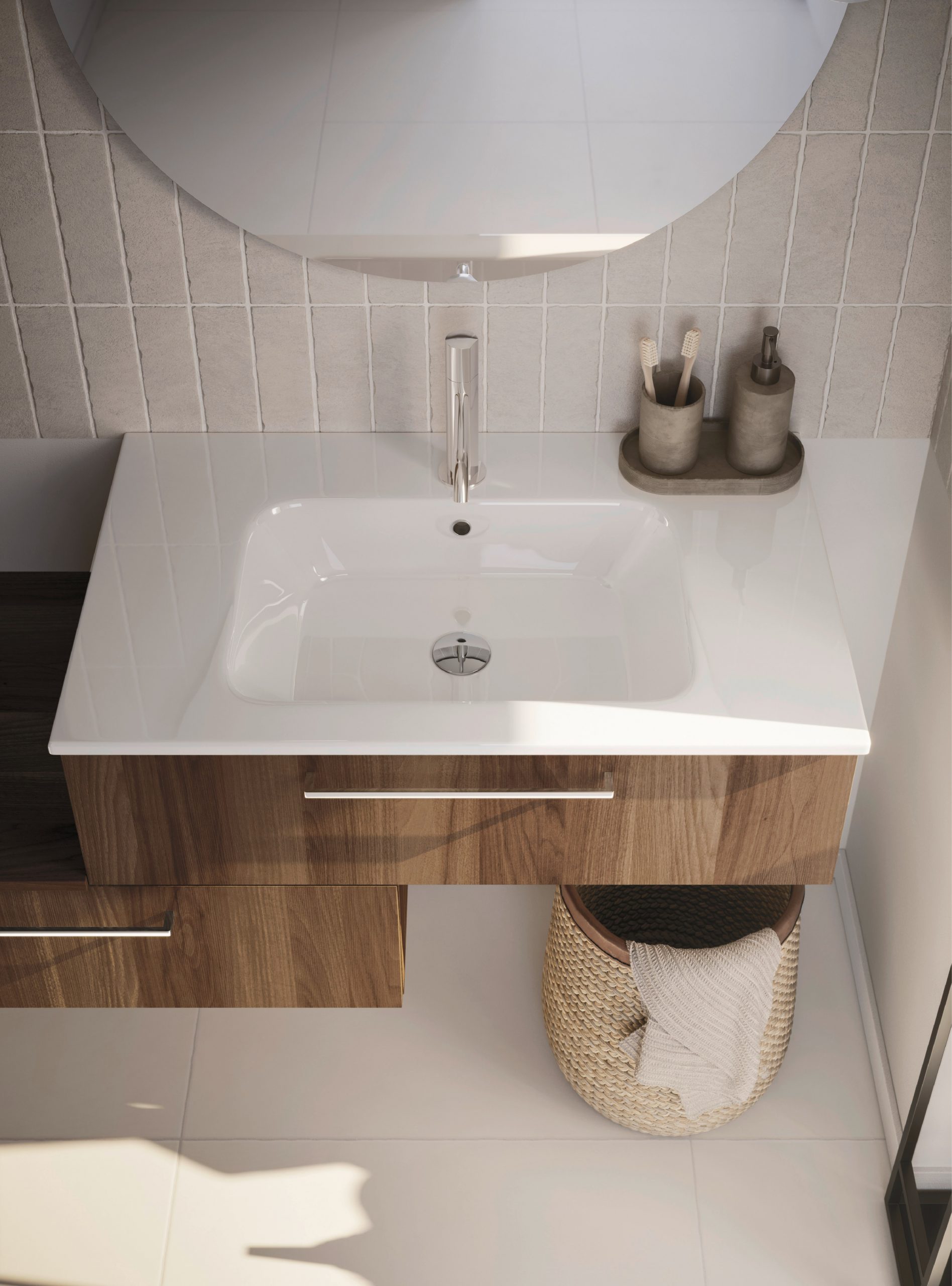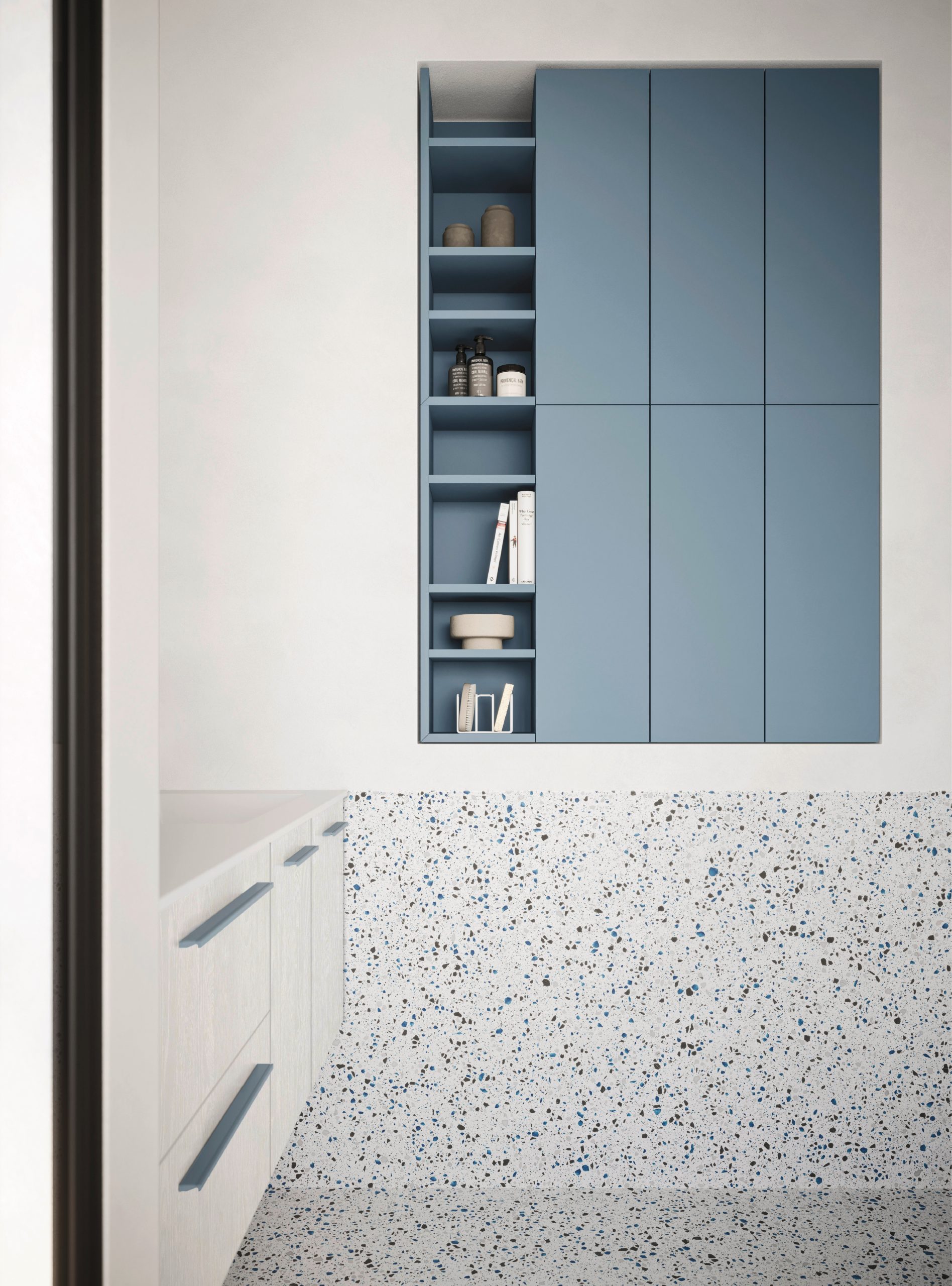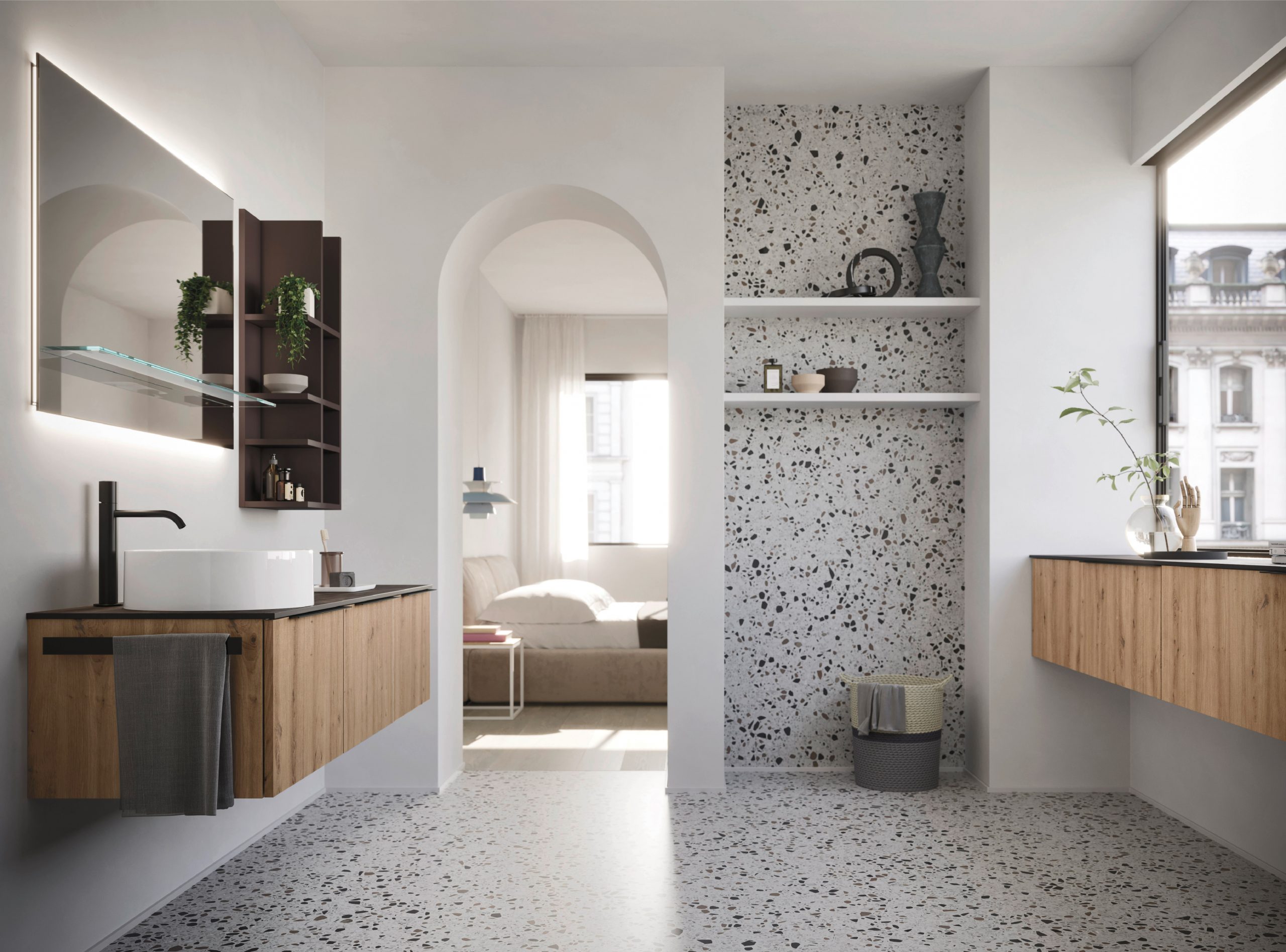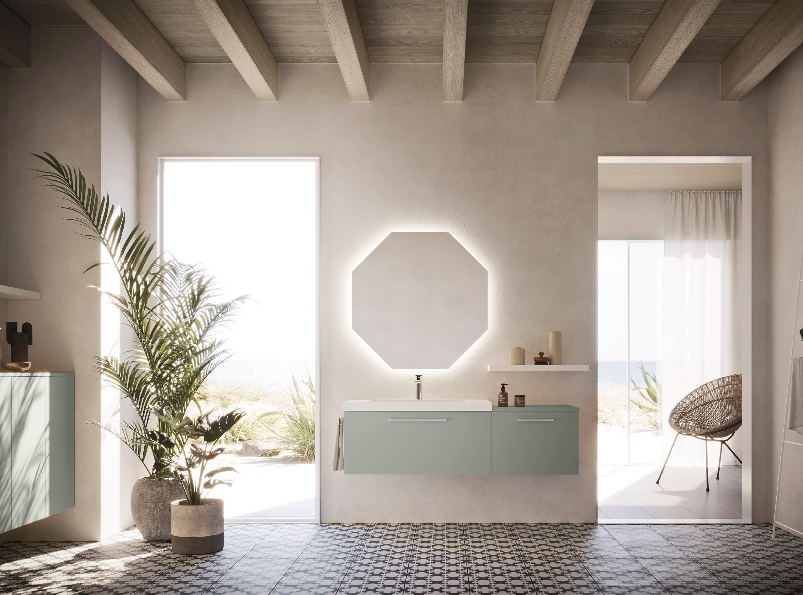 Ho.Me Plus est une collection innovante d’Arbi Arredobagno qui rassemble une large gamme de finitions en mélaminé thermostructuré avec des veines naturelles, des couleurs classiques ou tendance. La collection est disponible en deux variantes : l’une avec façade plate et poignée, l’autre avec la prise de main en « J » intégrée. Caracterisée par une grande modularité, grâce au choix entre trois profondeurs et différentes largeurs, la collection s’enrichit de la version courbée, qui propose des bases aux lignes douces pour satisfaire même les besoins d’optimisation des espaces les plus réduits.