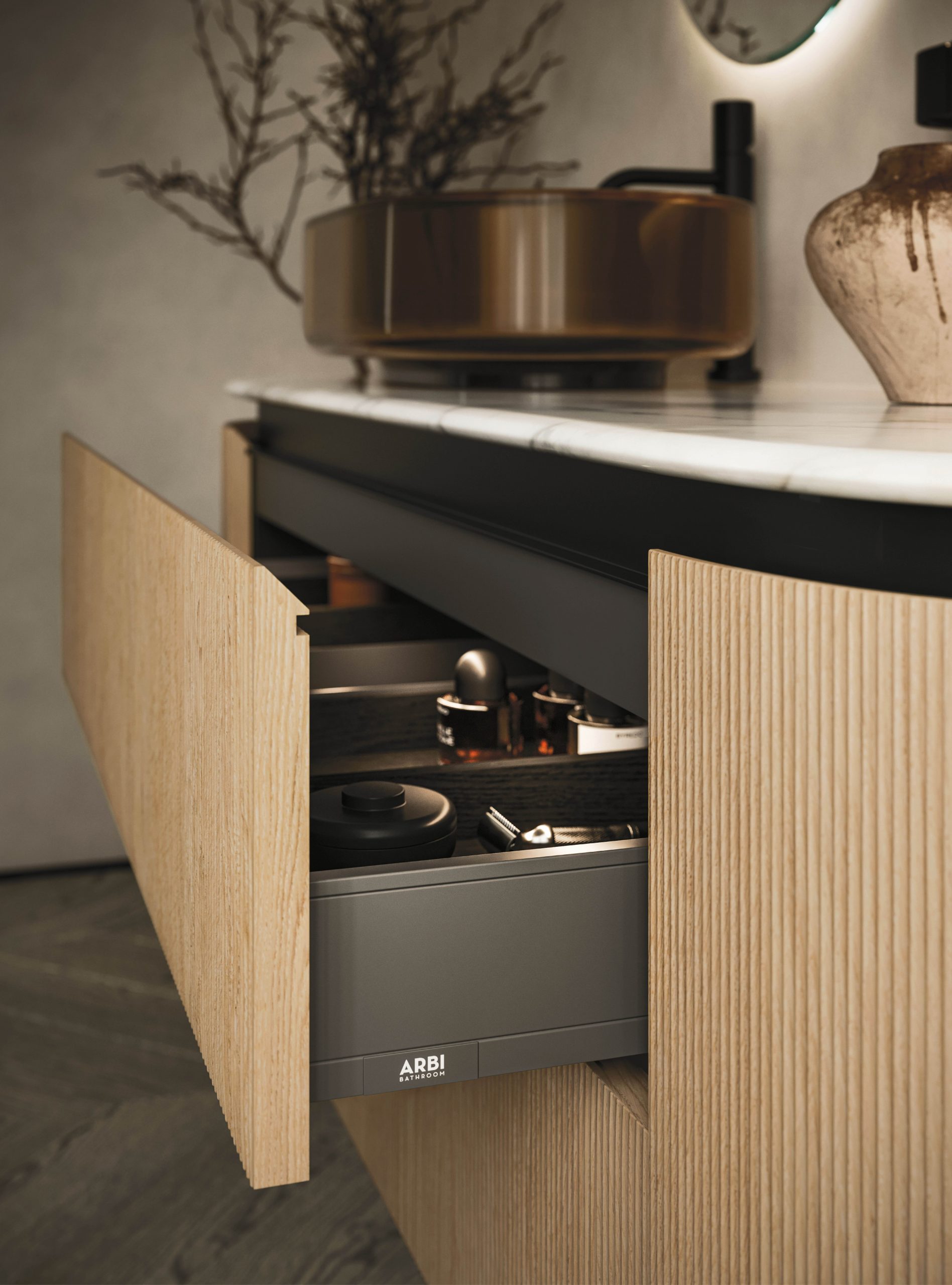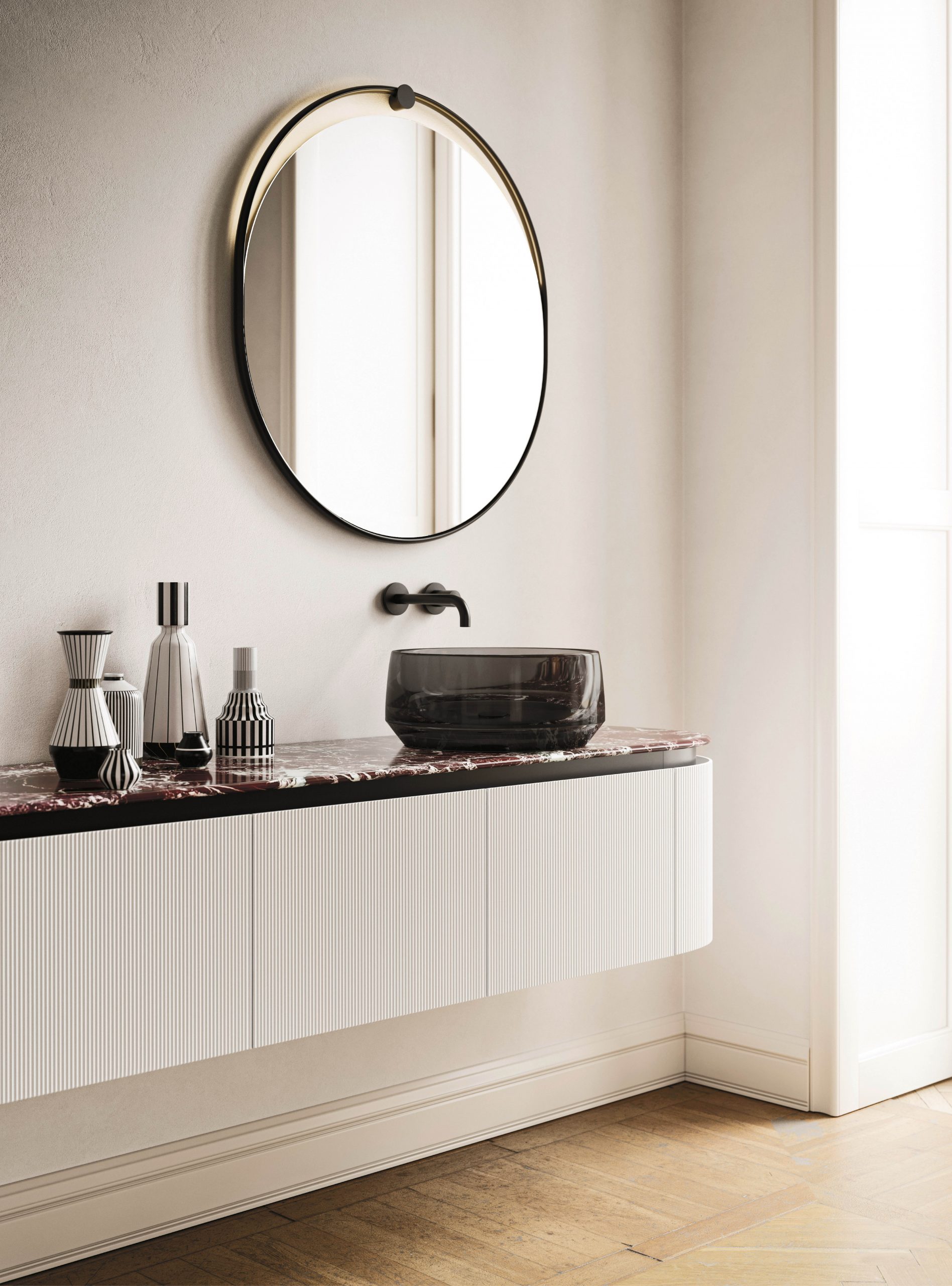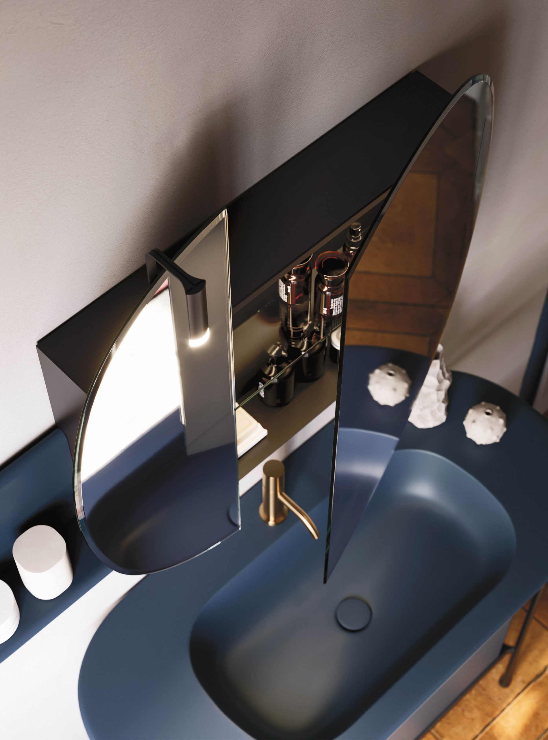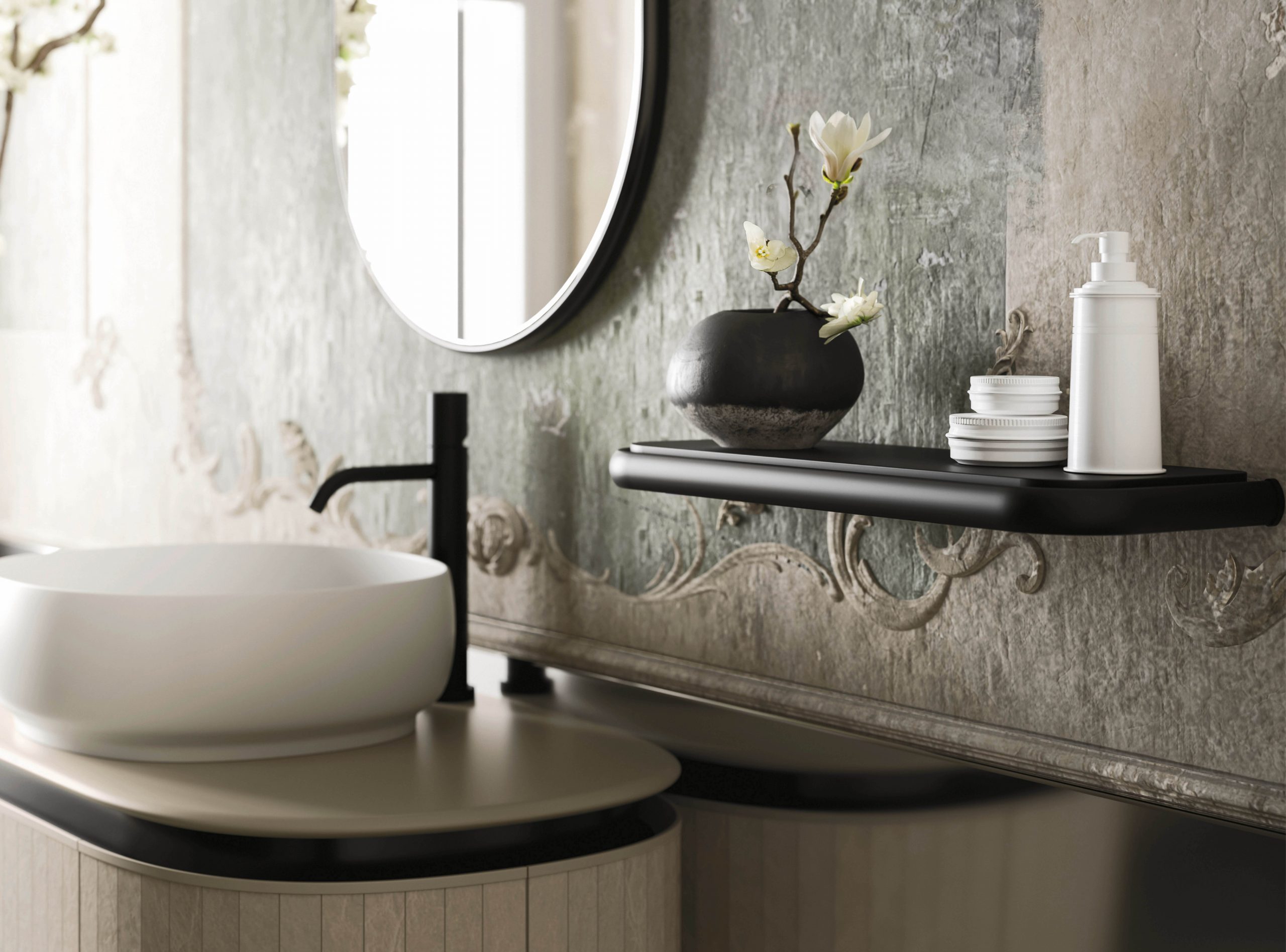 Le profil en amande est présent non seulement dans les meubles et les plans, mais aussi dans les accessoires coordonnés.