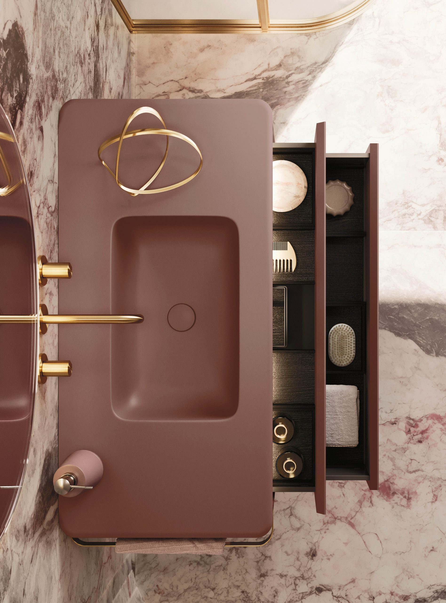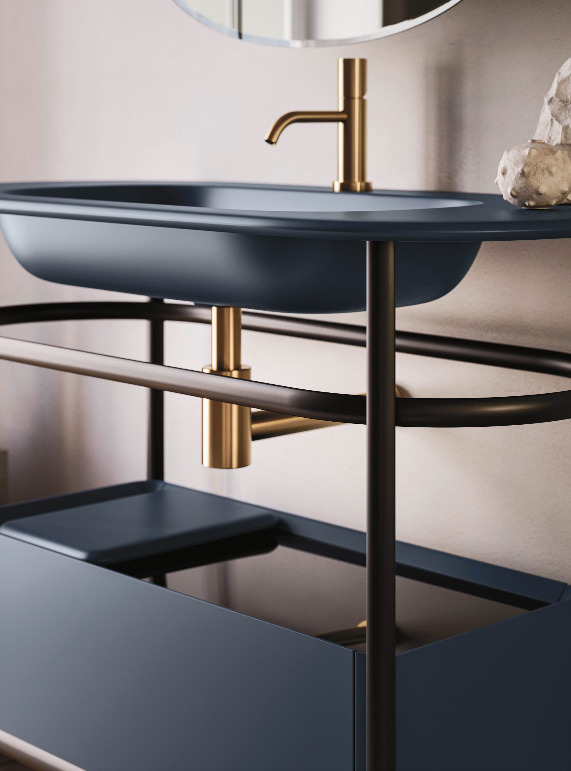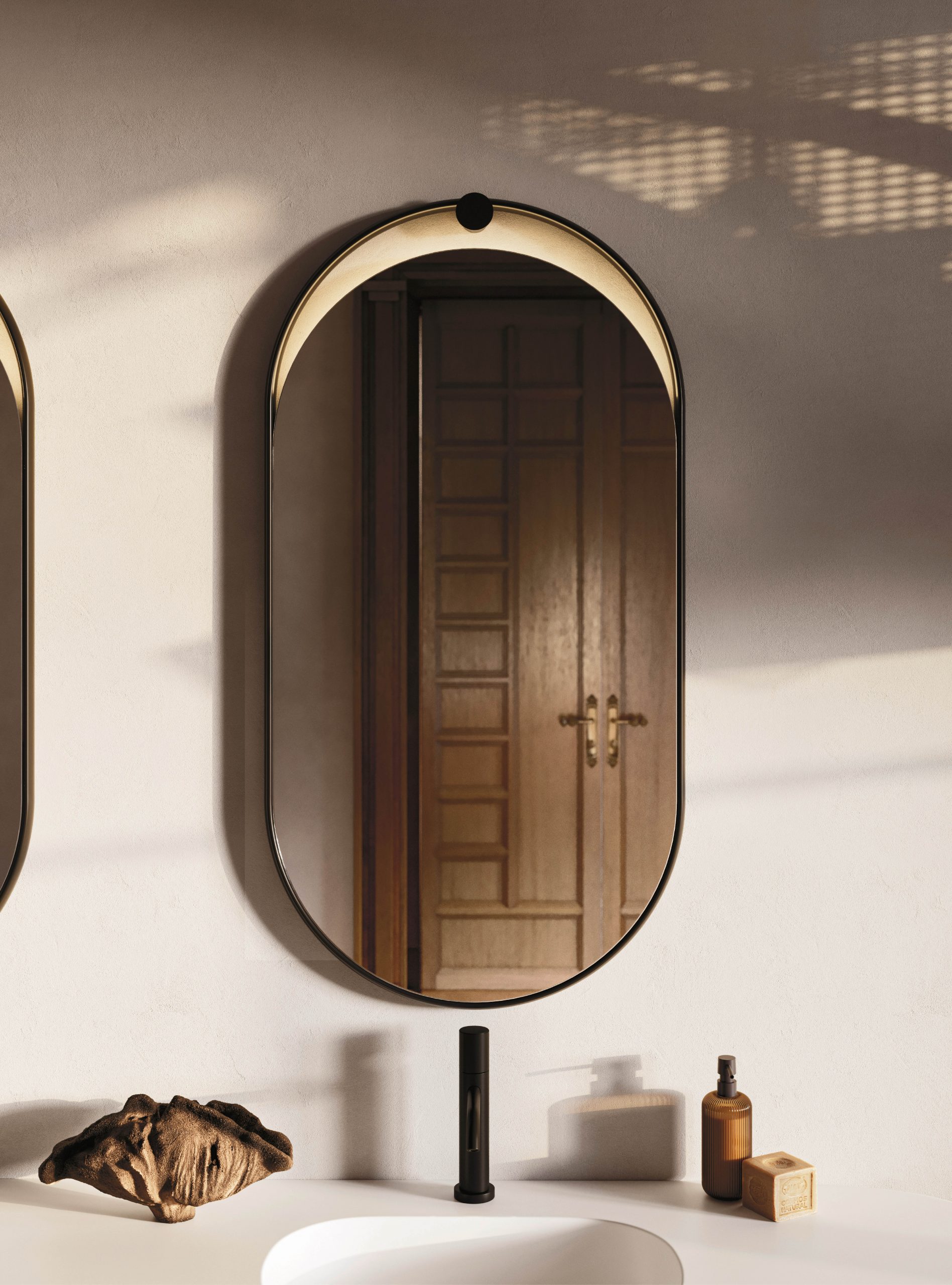Le profil en amande est présent non seulement dans les meubles et les plans, mais aussi dans les accessoires coordonnés.