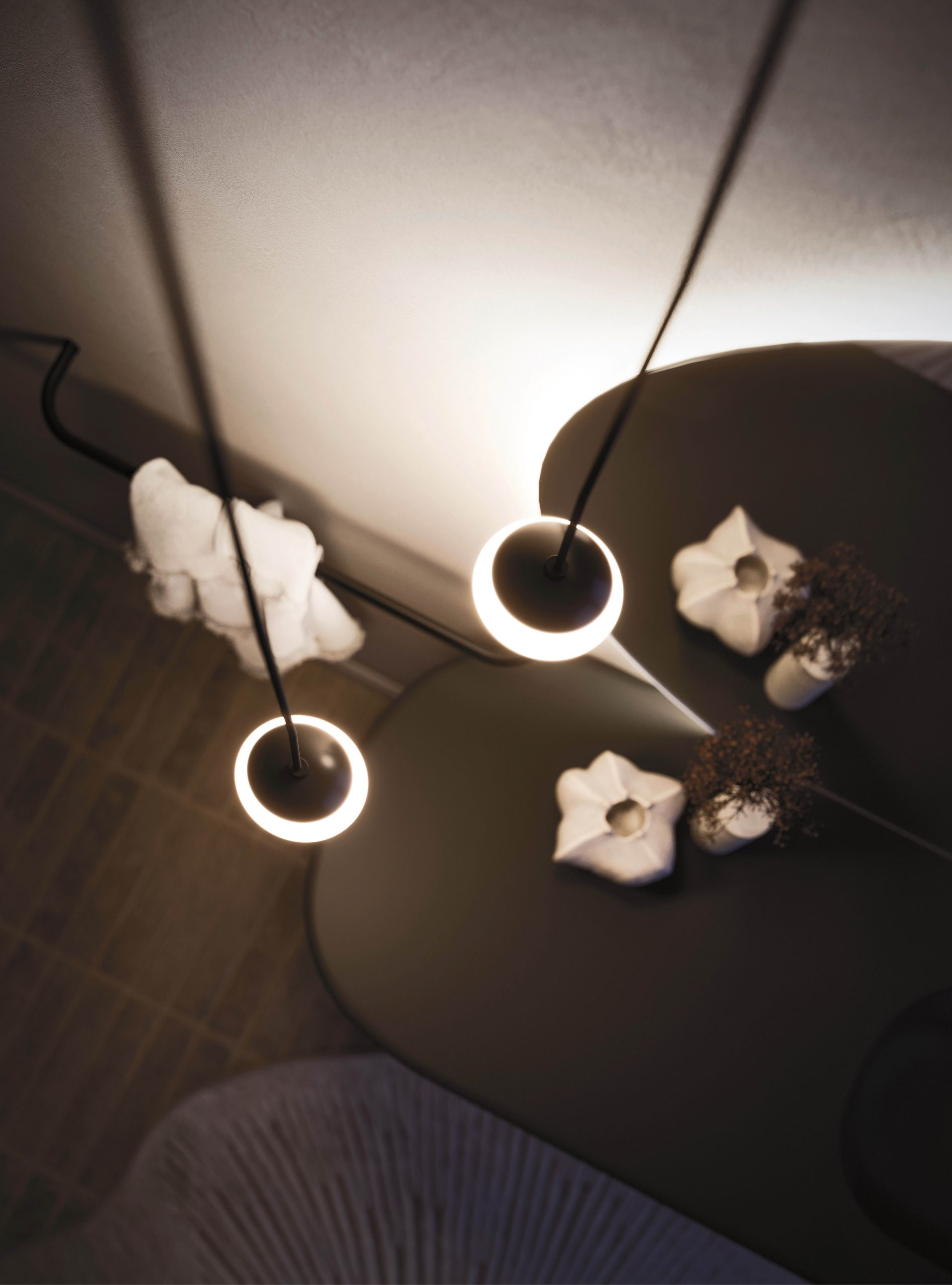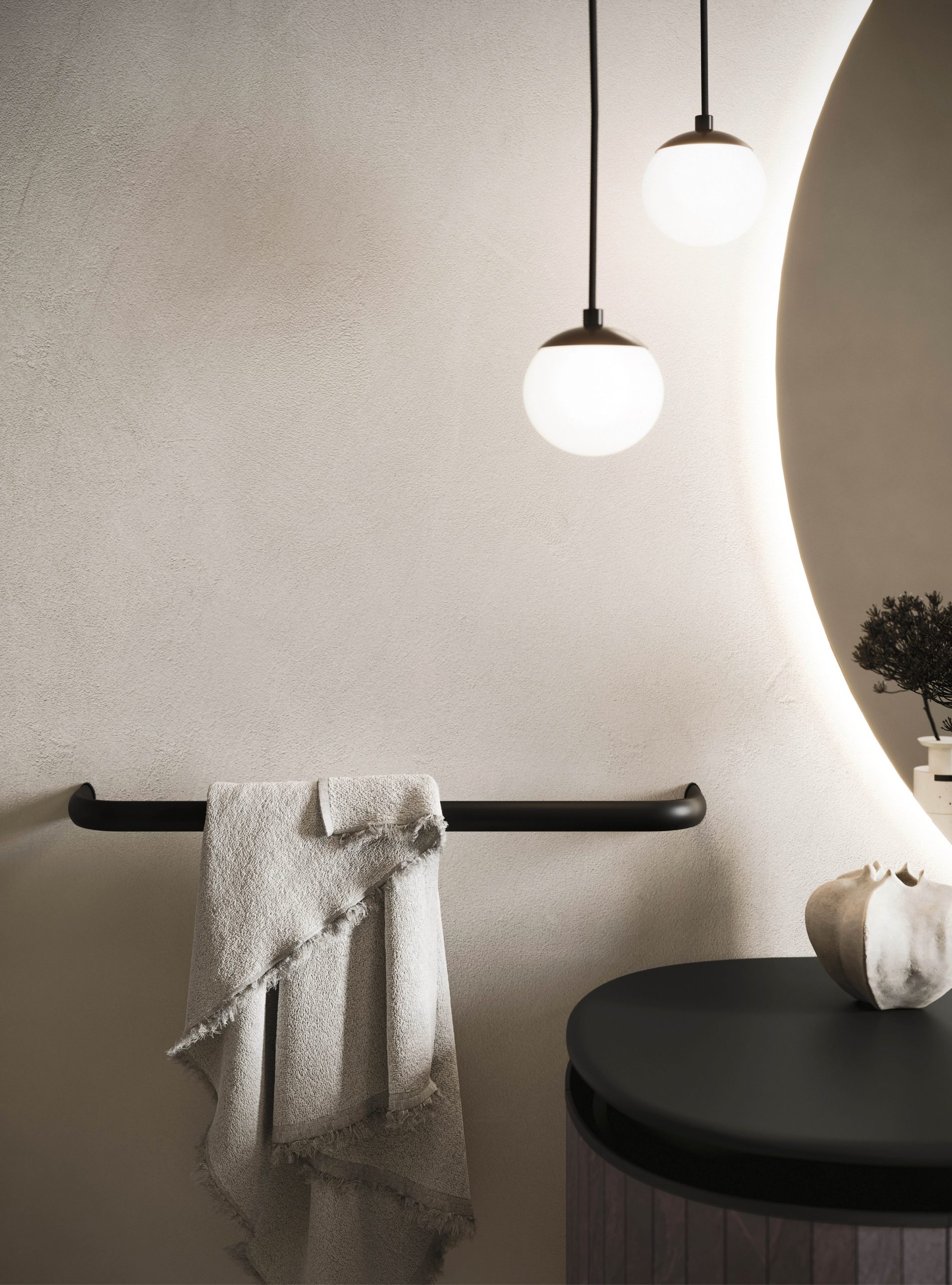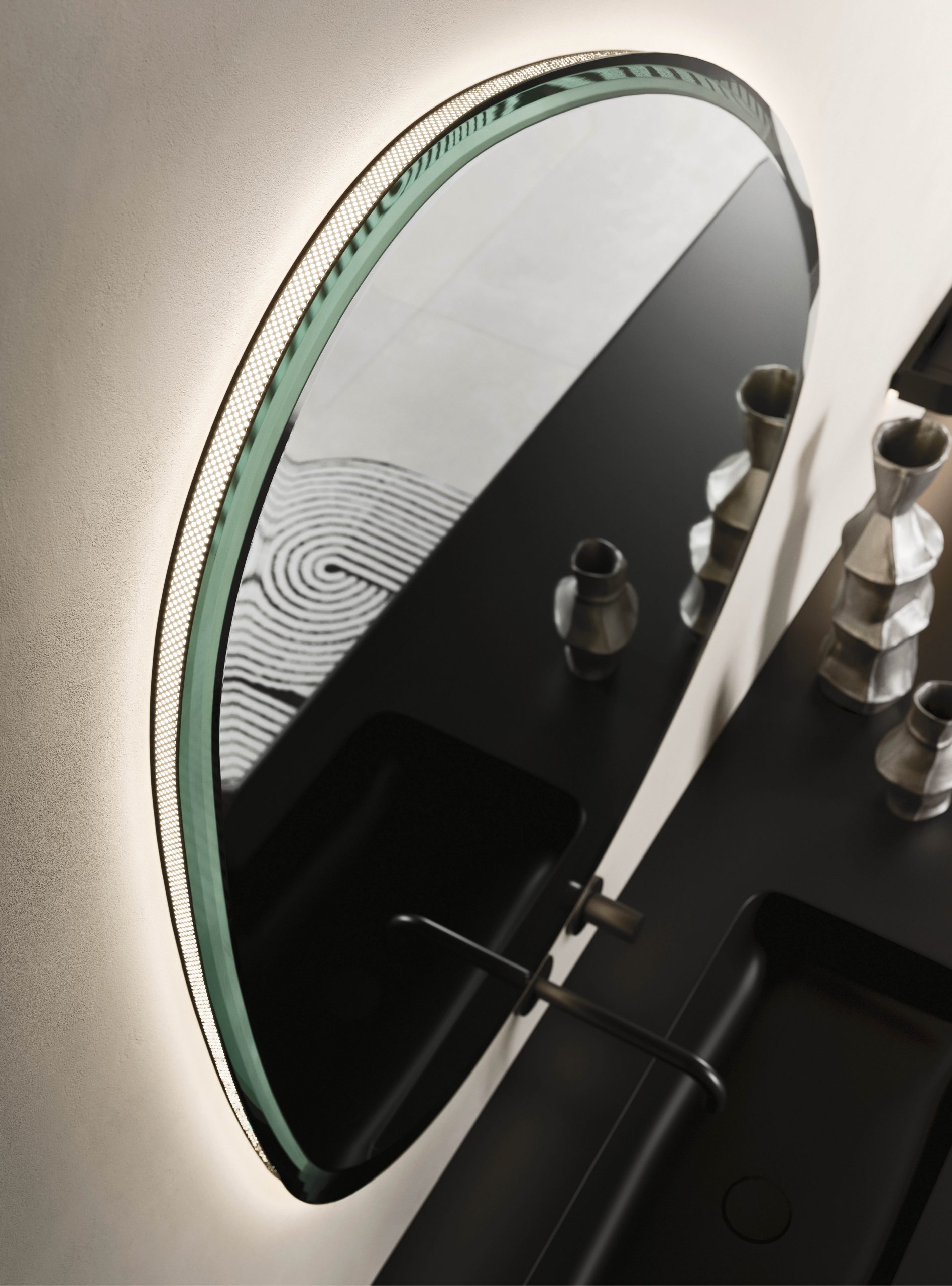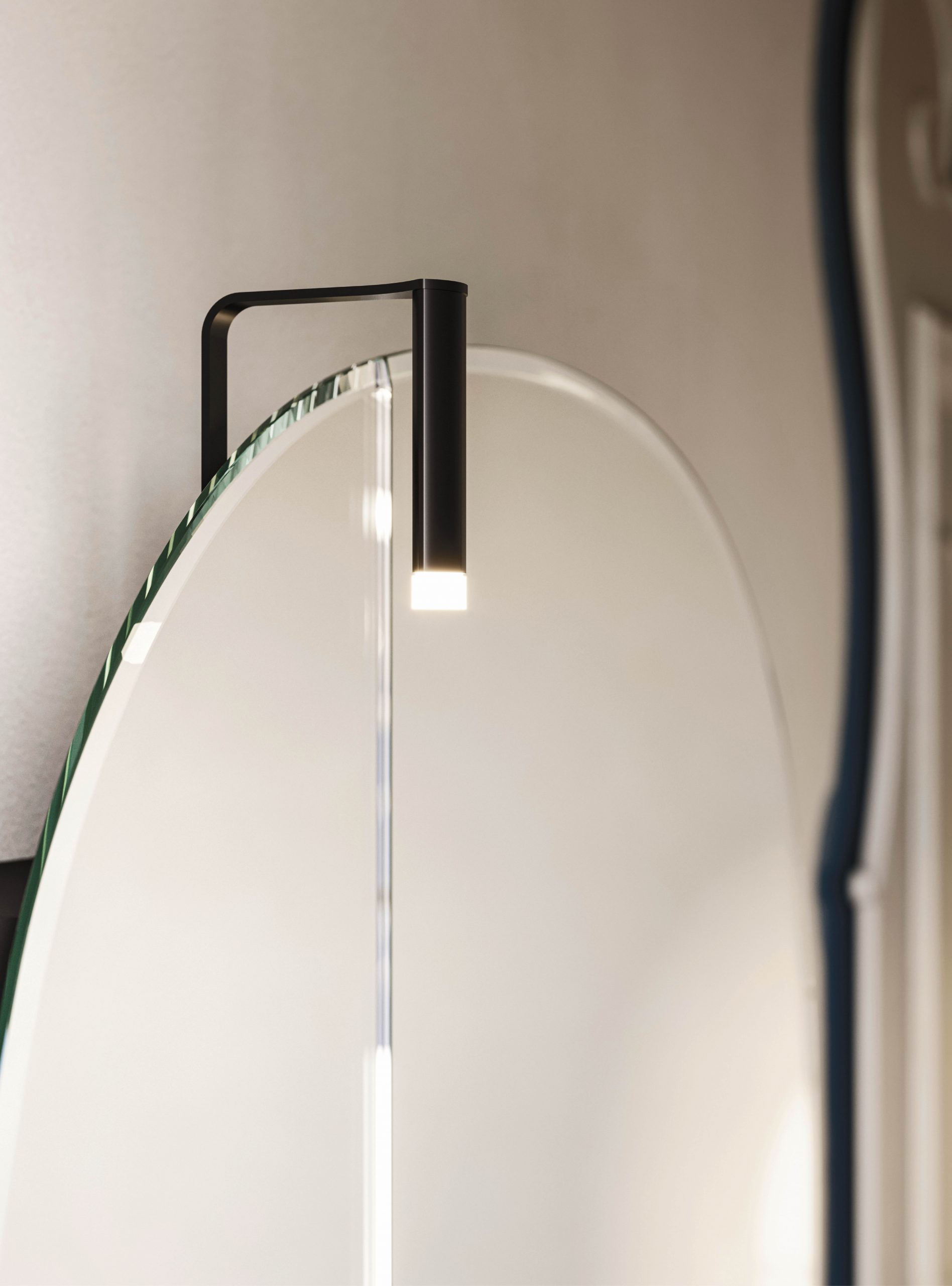 Le profil en amande est présent non seulement dans les meubles et les plans, mais aussi dans les accessoires coordonnés.