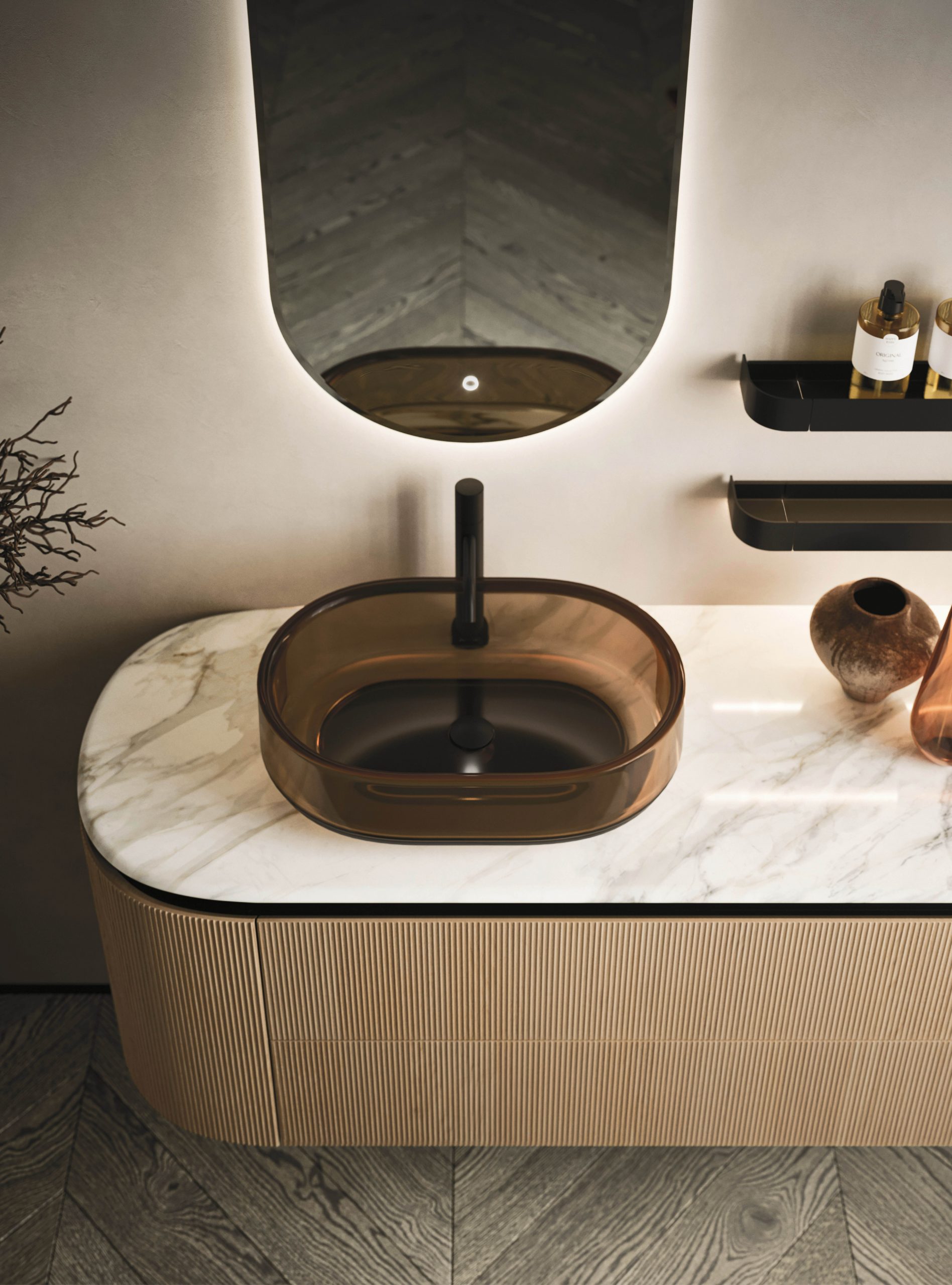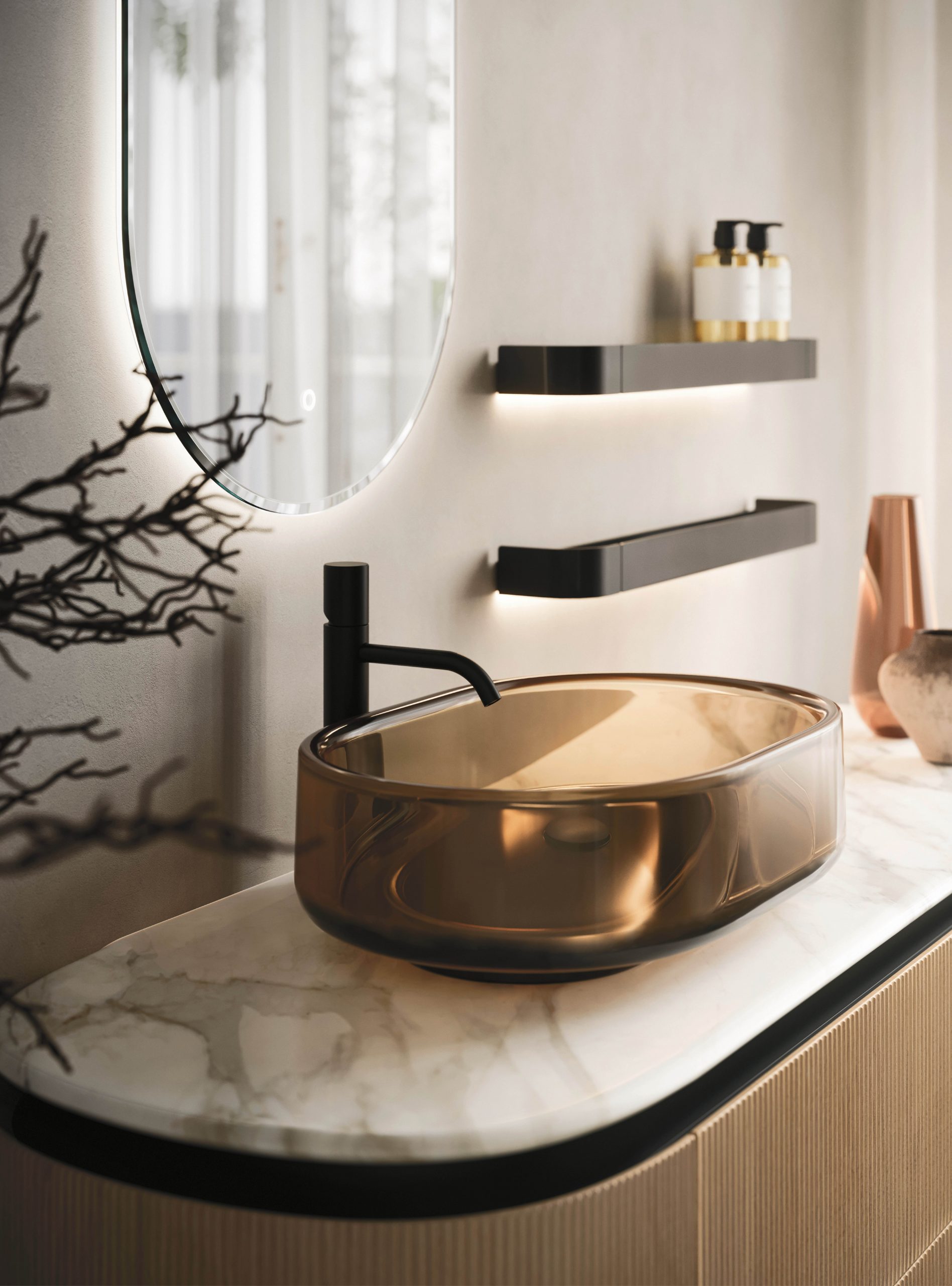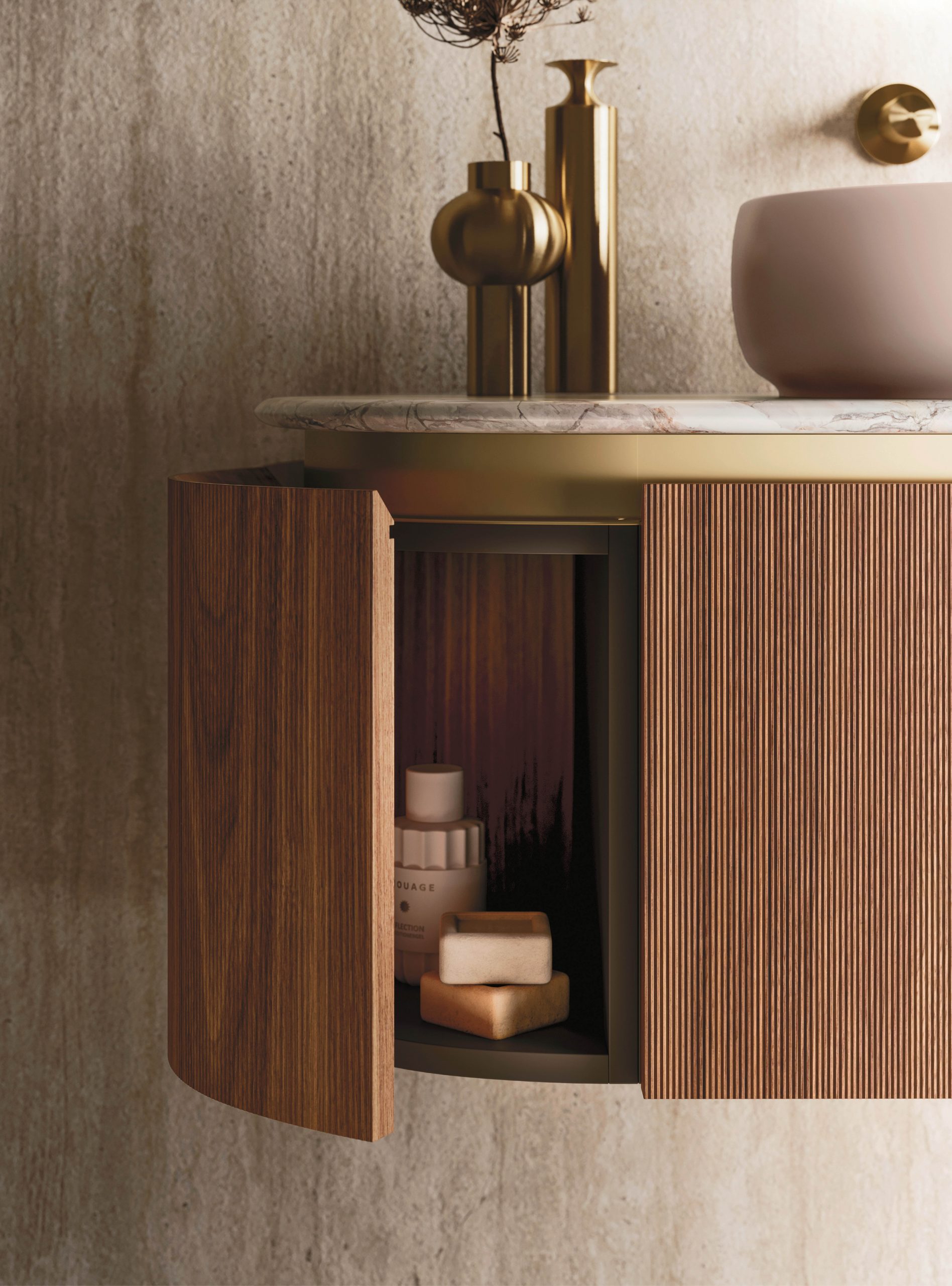 Almond, la nouvelle proposition d’aménagement signée Meneghello Paolelli Associati, exprime l’équilibre parfait entre raffinement formel et esprit innovant. Inspirée de la forme de l’amande – d’où elle tire son nom – Almond se distingue par ses lignes douces, arrondies et sinueuses, qui confèrent caractère et élégance à chaque élément.