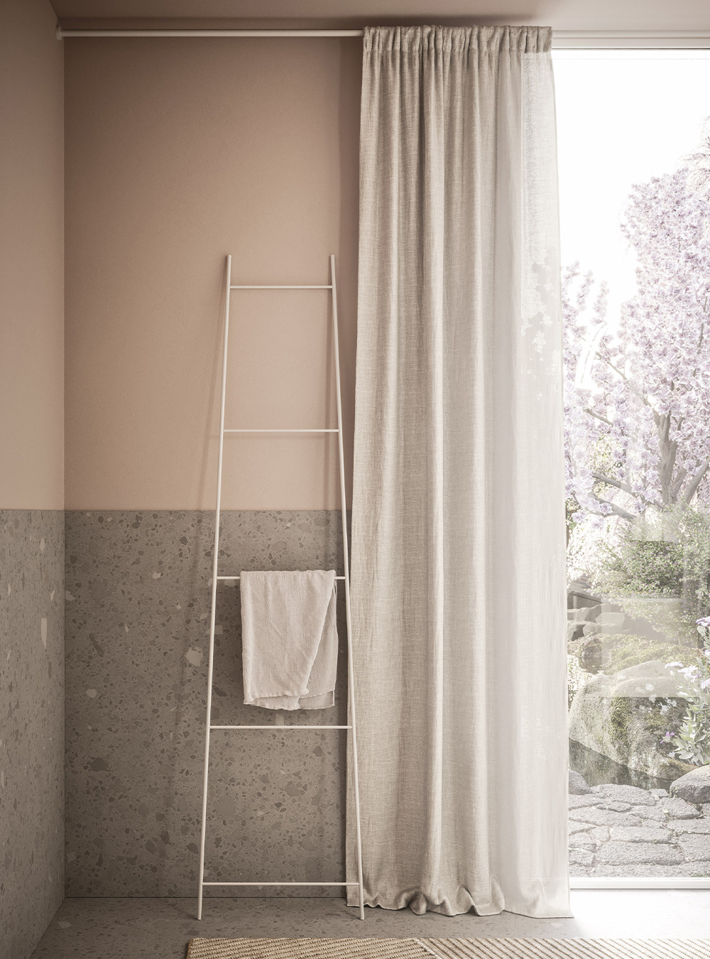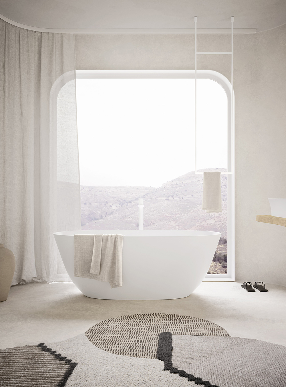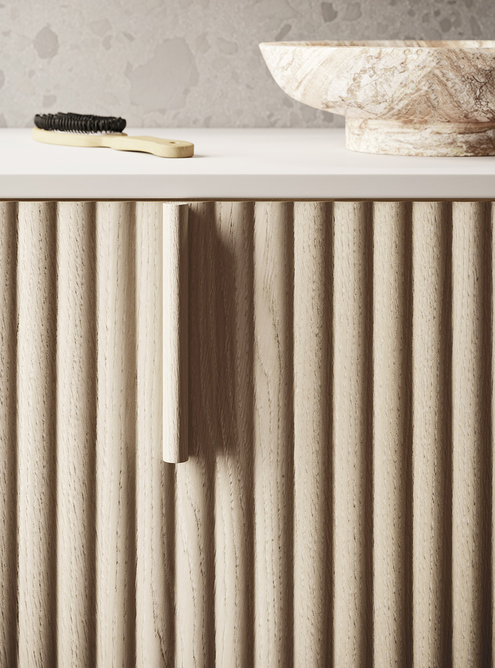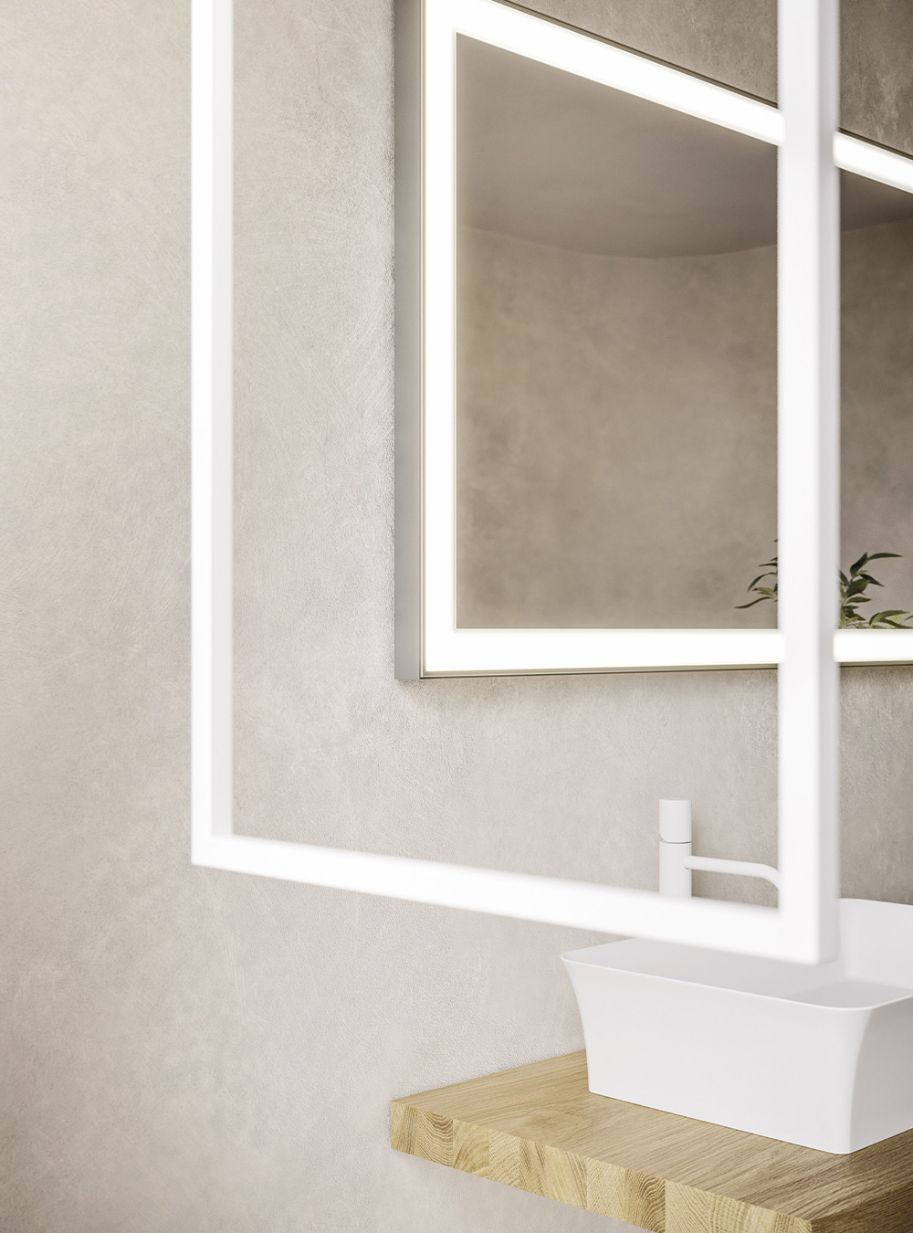 Code Wave: modularité et raffinement des matériaux pour meubles de salle de bain avec la particulière découpe à 45°