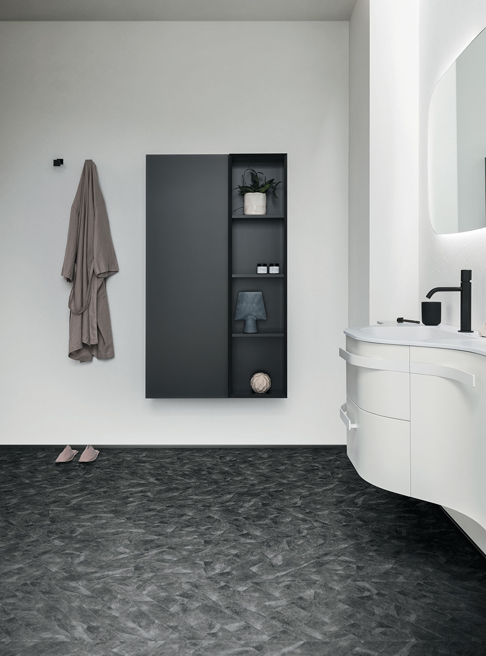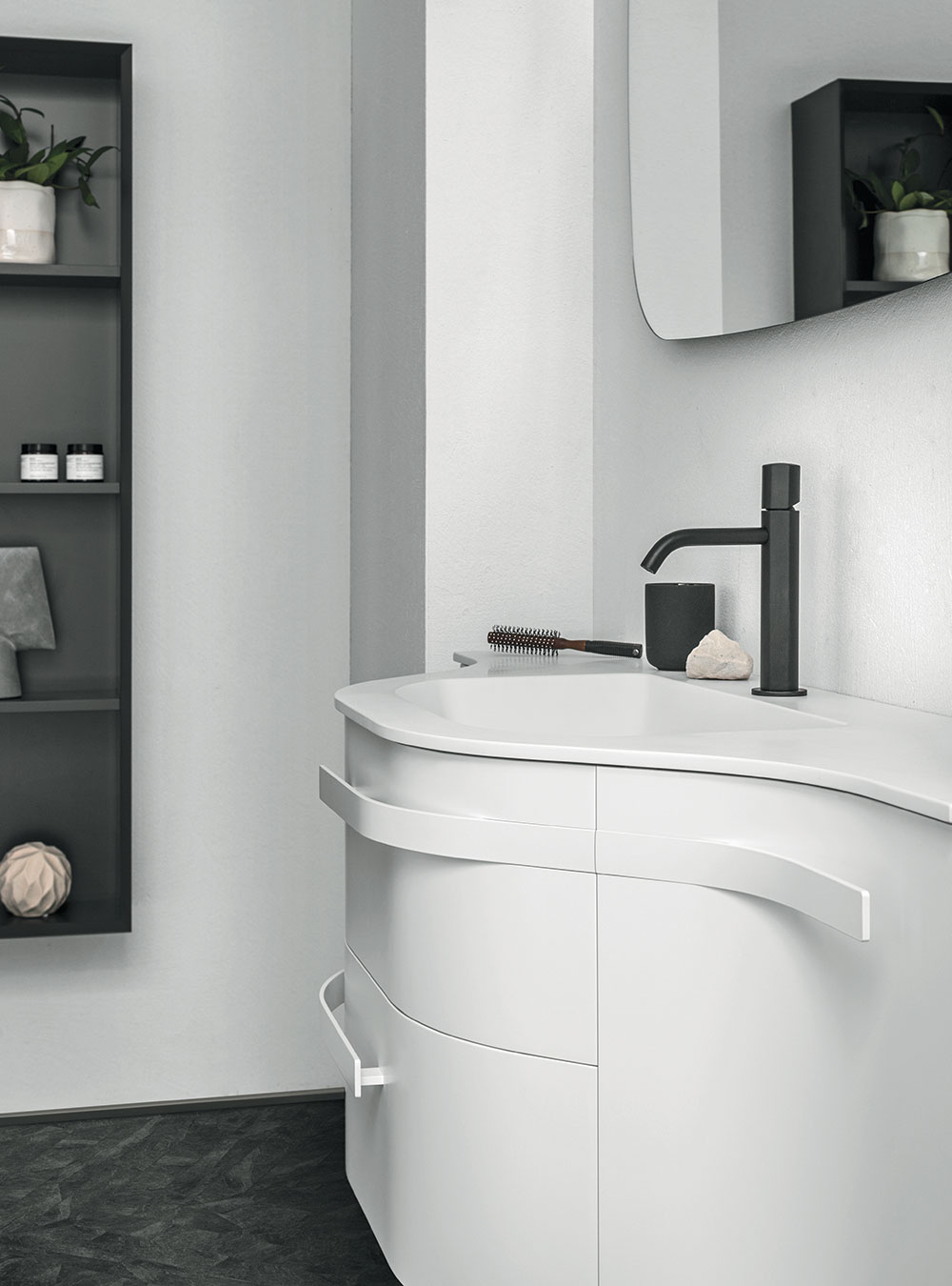 Fusion trouve dans sa ligne arrondie son propre signe caractéristique : une collection de meubles de design qui juxtapose les volumes doux des éléments bas aux rigides géométries des colonnes et des éléments ouverts. Disponible dans la nouvelle version MOBY, caractérisée par la particulière poignée, la collection crée un inédit équilibre dans la salle de bain, grâce aux formes douces et aux raffinées juxtapositions. Des ameublements de salle de bain pratiques et fonctionnels qui créent une atmosphère accueillante et rassurante, en s’adaptant parfaitement à chaque style et personnalité.