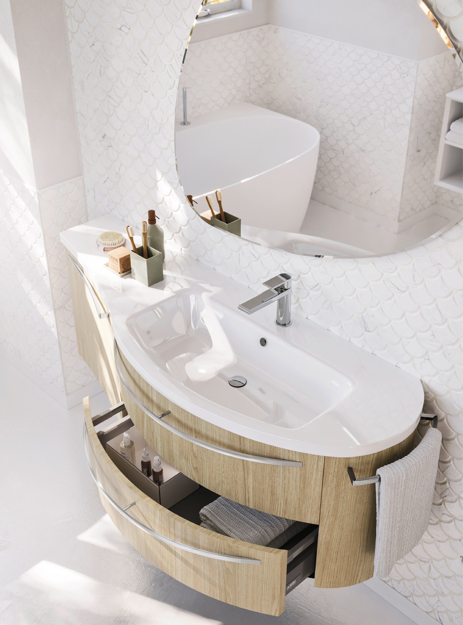 ho.me plus curvo: ho.me plus liscio: meuble de salle de bain tendance en mélaminé thermostructuré