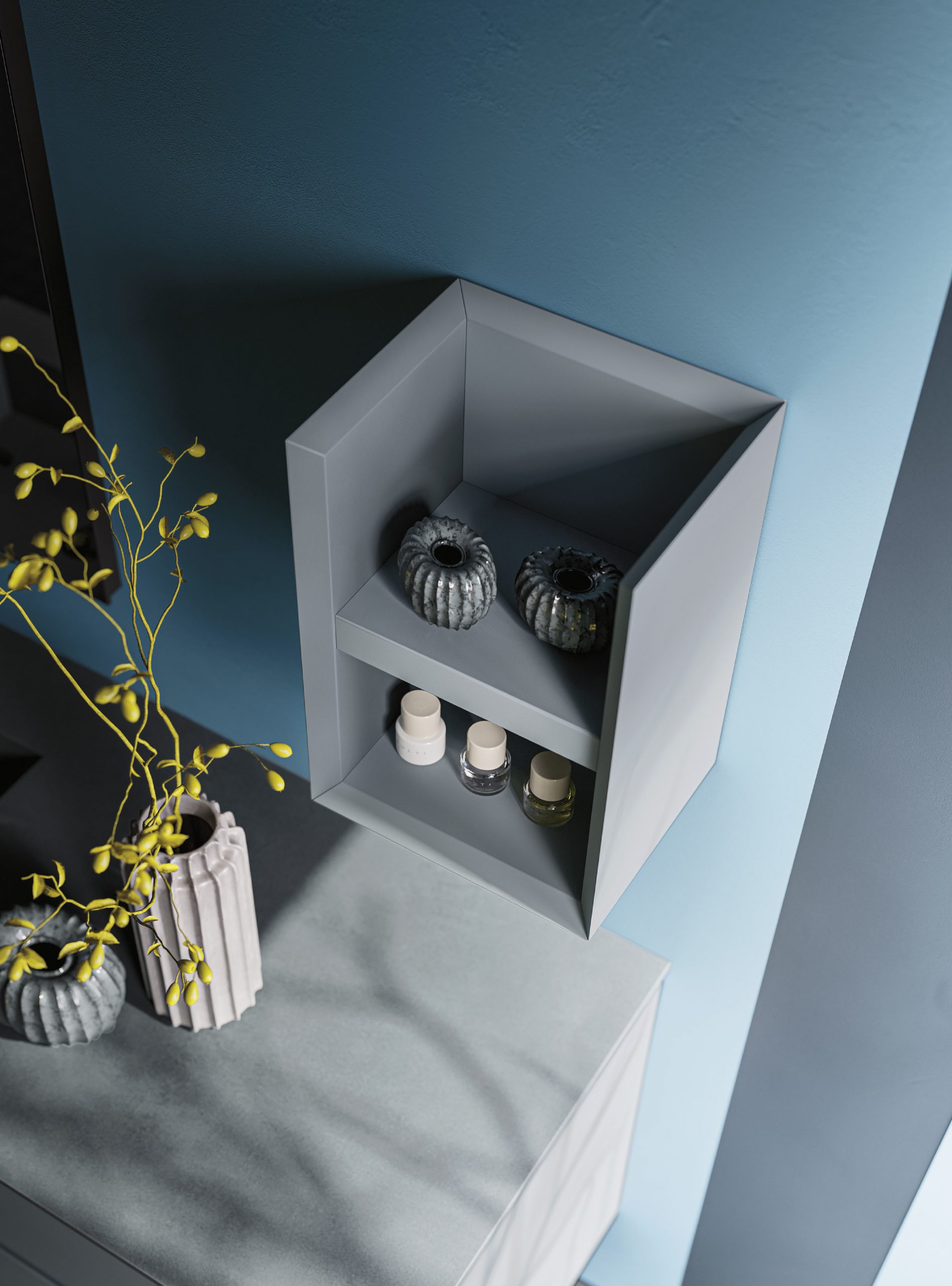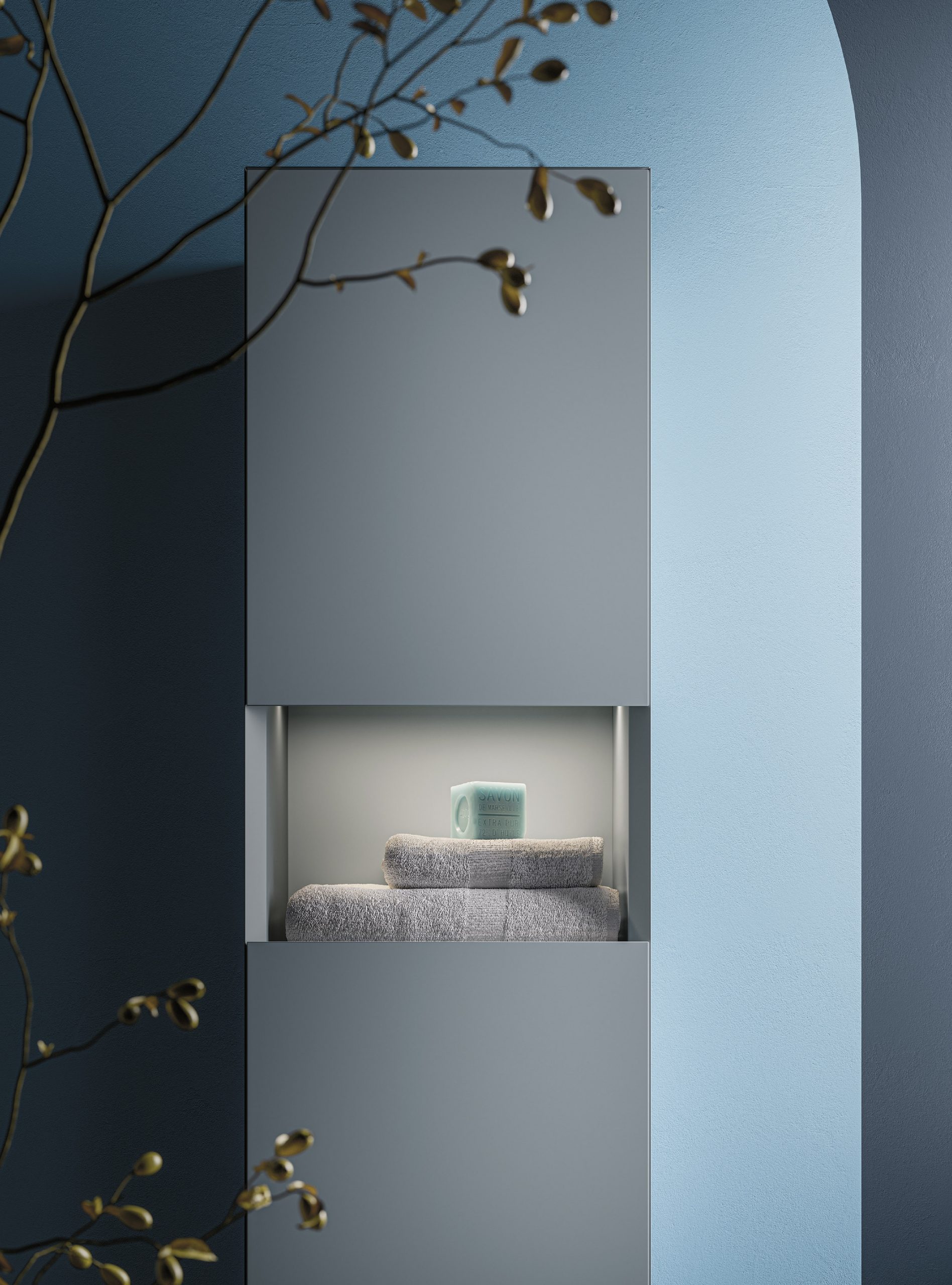 L’âme de Master est définie par la rigueur formelle du meuble monobloc qui se fonde harmonieusement avec la sophistication esthétique garantie par la couleur, protagoniste absolue du projet. La particularité de la finition à 45° ajoute une touche d’élégance sophistiquée à la poignée intégrée qui donne style et assure un meilleur confort d’utilisation.