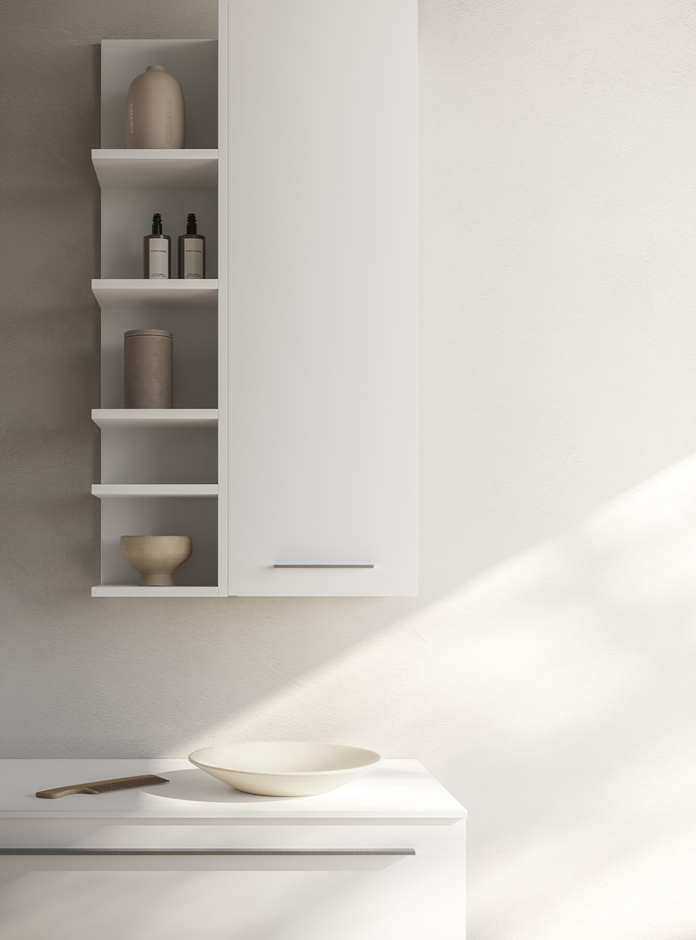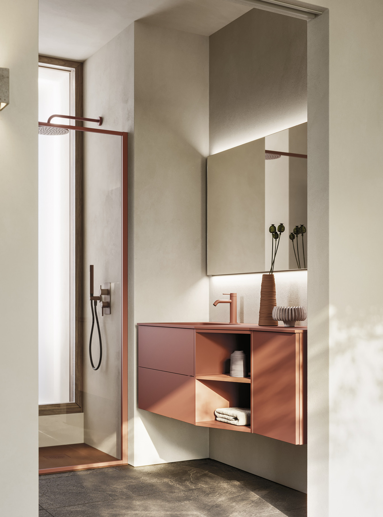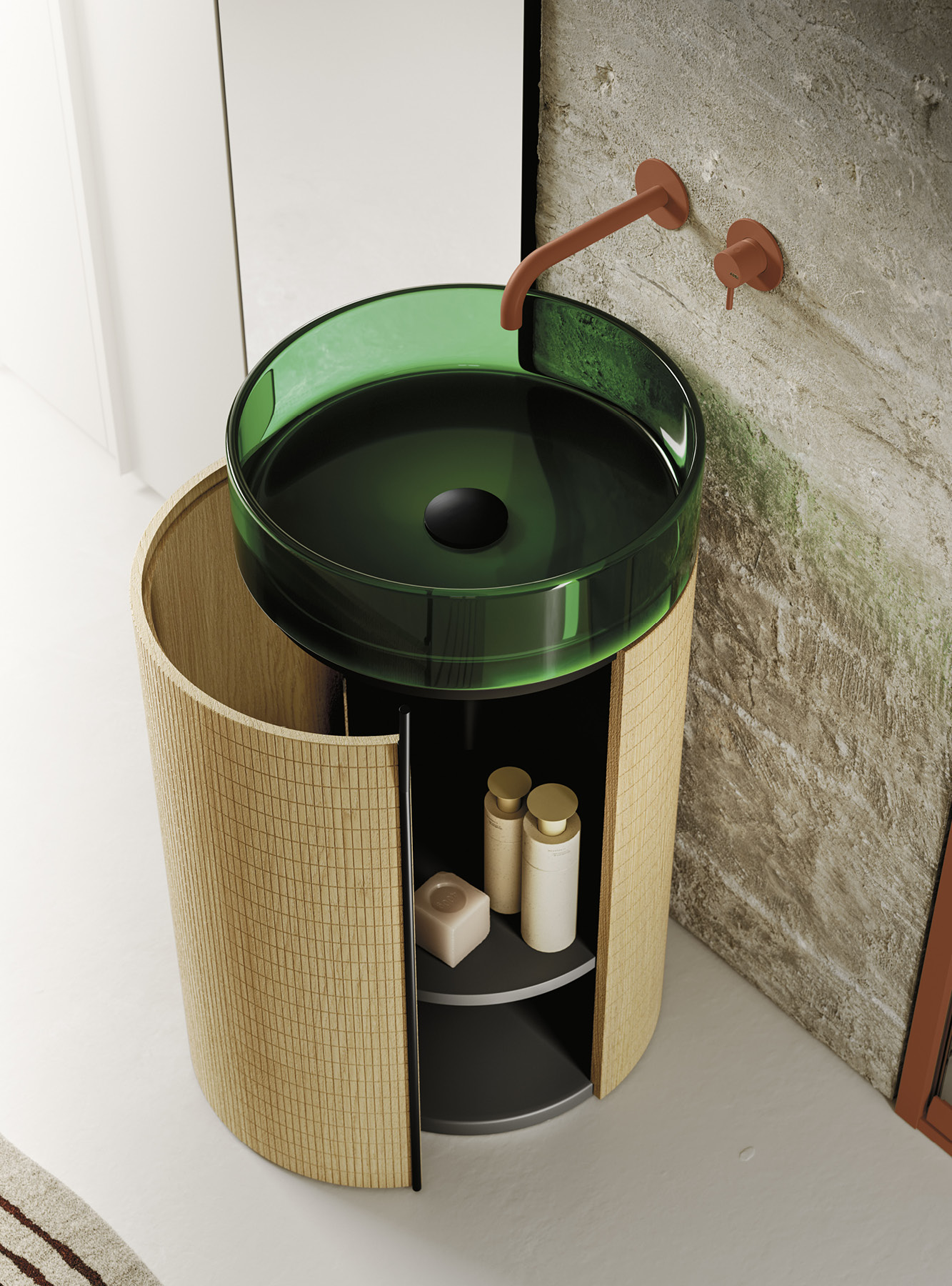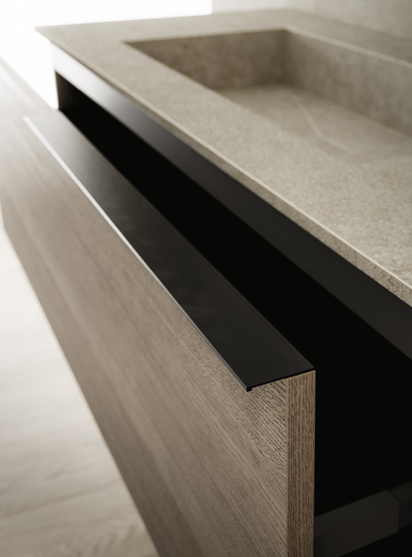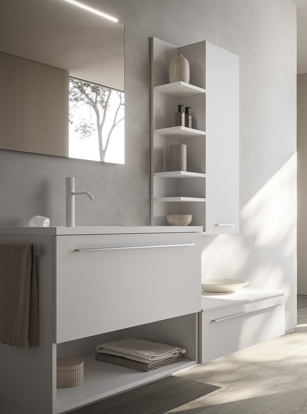 La collection d’ameublement de salle de bain Sky exprime l’essentialité et l’élégance grâce aux meubles de salle de bain modernes et de design, aux lignes droites et sophistiquées. Un projet où rationalité et esthétique coïncident et sont représentées dans de savantes compositions de matériaux et de volumes, expression d’une profonde culture de l’ameublement. Sky, depuis toujours caractérisé par la porte lisse, agrandit sa collection et est maintenant disponible en quatre nouvelles versions « spéciales », Sky U, Sky Gola, Sky Ondina et Sky Pregiati, en meublant différentes salles de bain avec une harmonie raffinée.