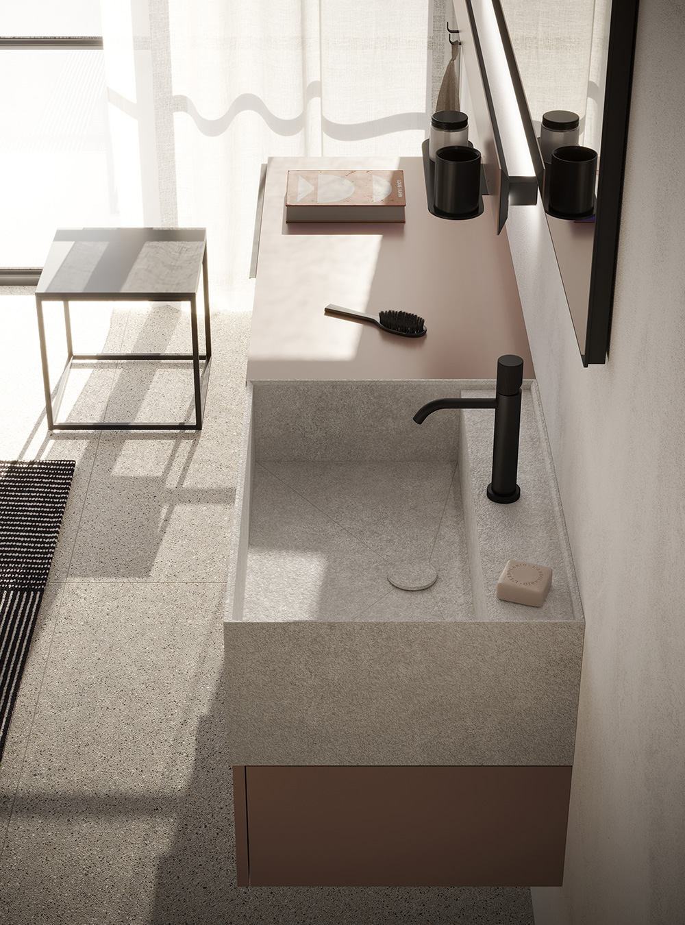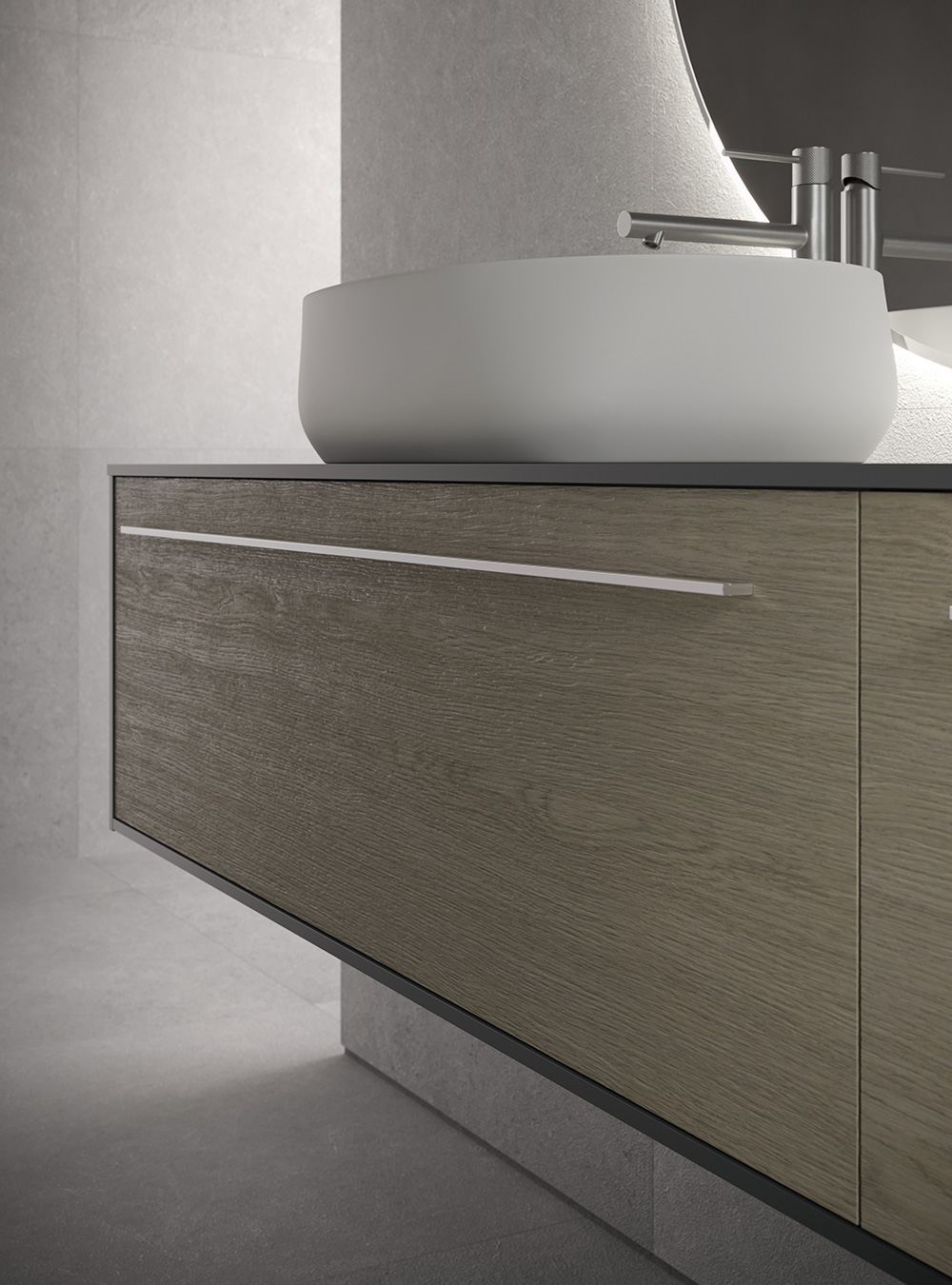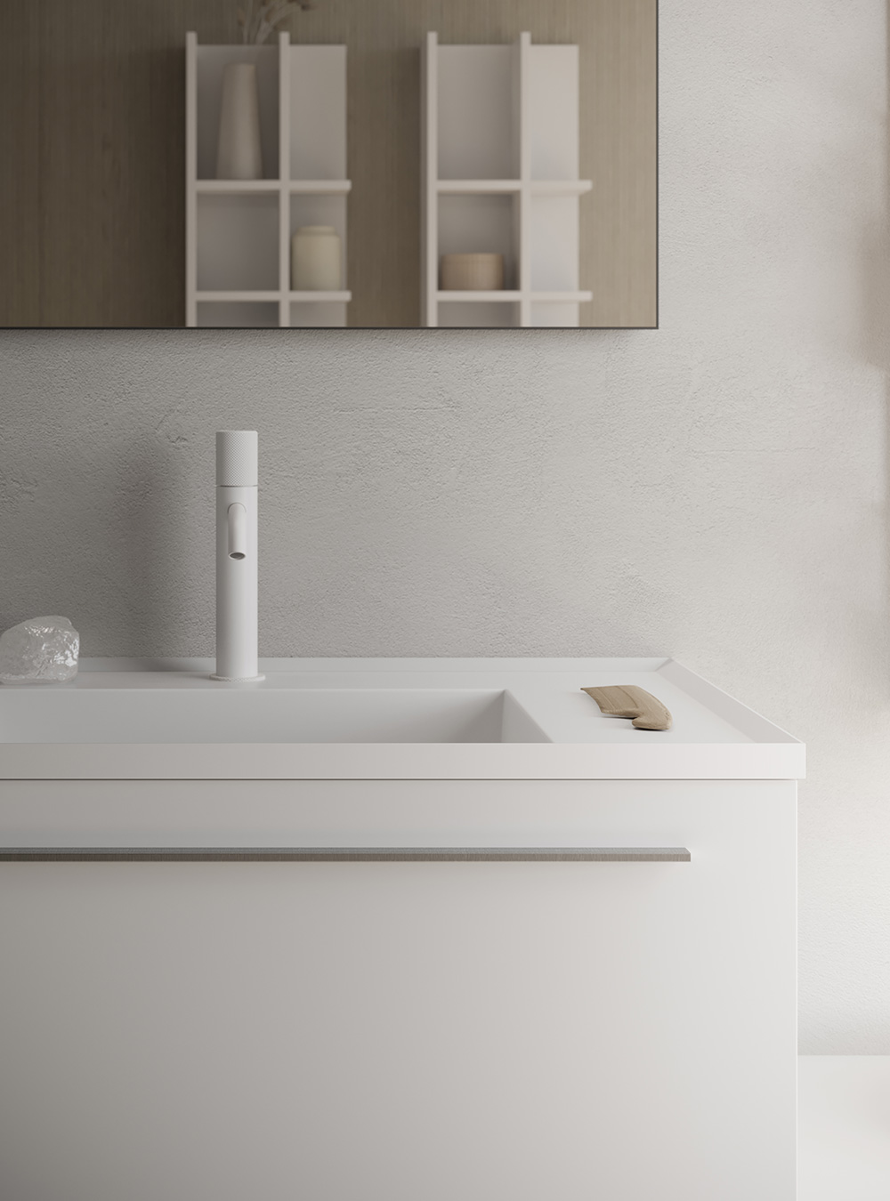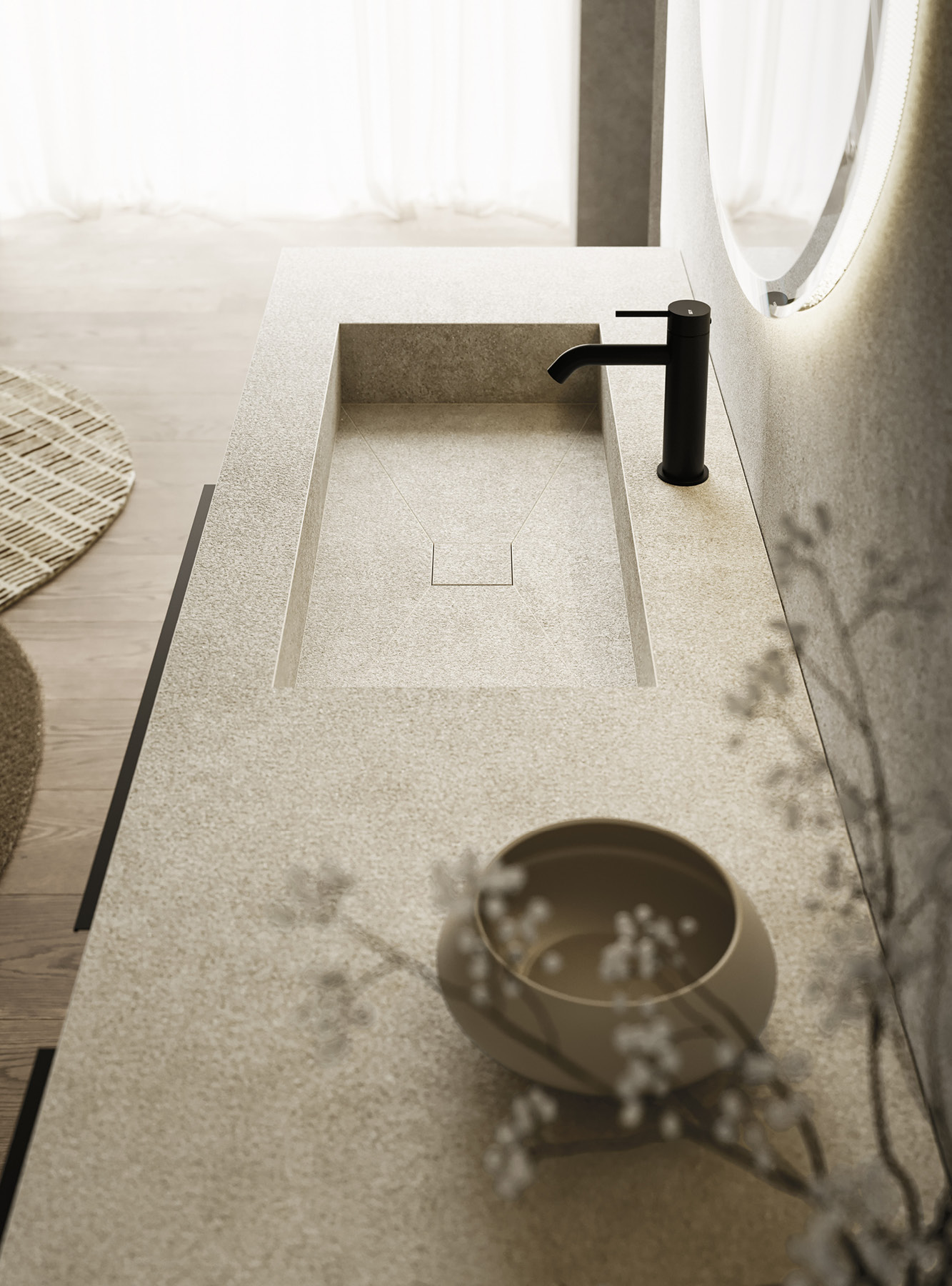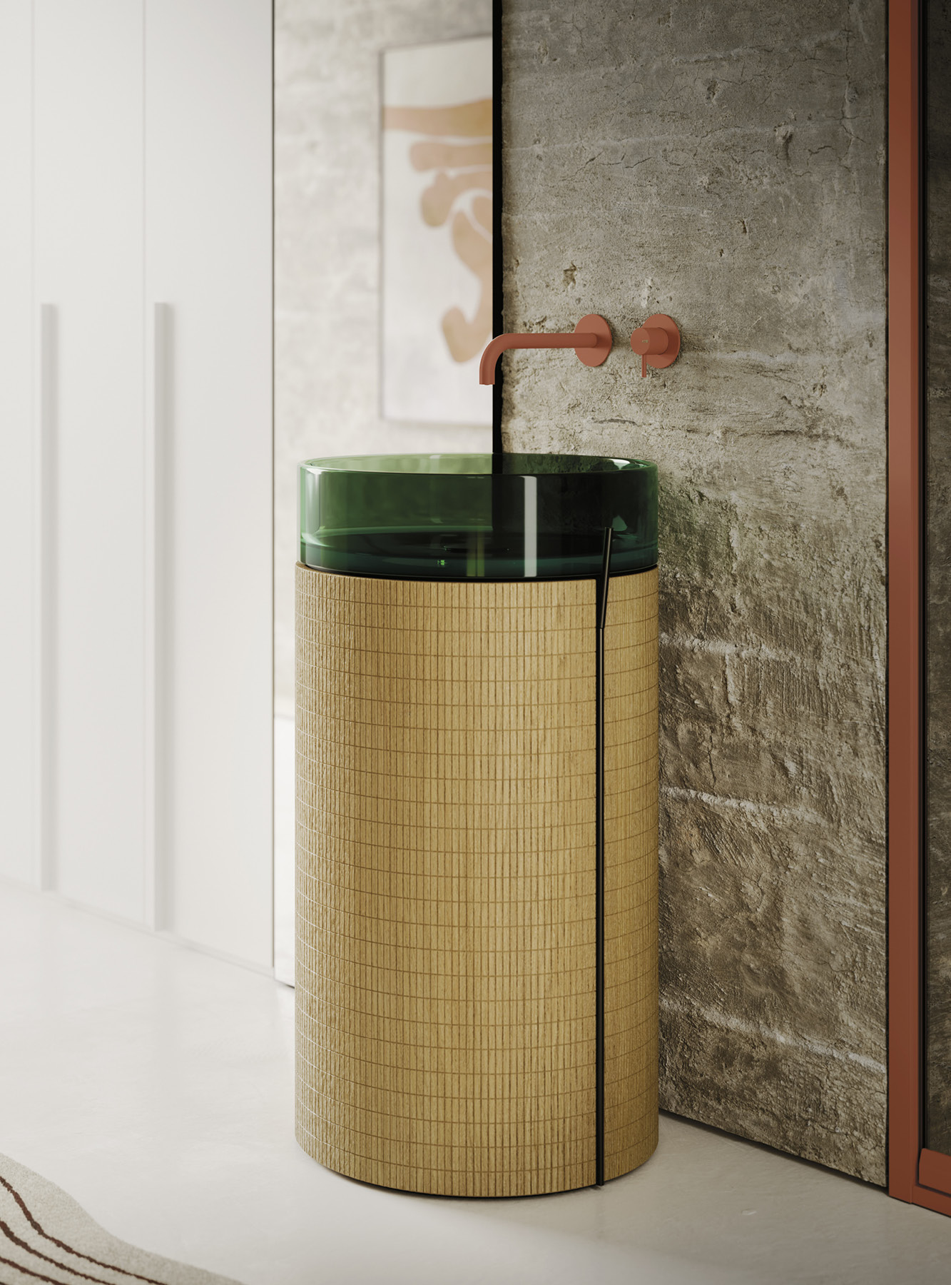 La collection d’ameublement de salle de bain Sky exprime l’essentialité et l’élégance grâce aux meubles de salle de bain modernes et de design, aux lignes droites et sophistiquées. Un projet où rationalité et esthétique coïncident et sont représentées dans de savantes compositions de matériaux et de volumes, expression d’une profonde culture de l’ameublement. Sky, depuis toujours caractérisé par la porte lisse, agrandit sa collection et est maintenant disponible en quatre nouvelles versions « spéciales », Sky U, Sky Gola, Sky Ondina et Sky Pregiati, en meublant différentes salles de bain avec une harmonie raffinée.