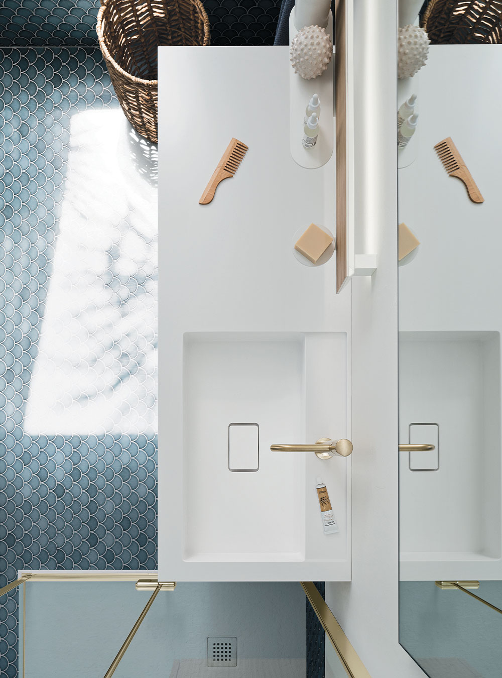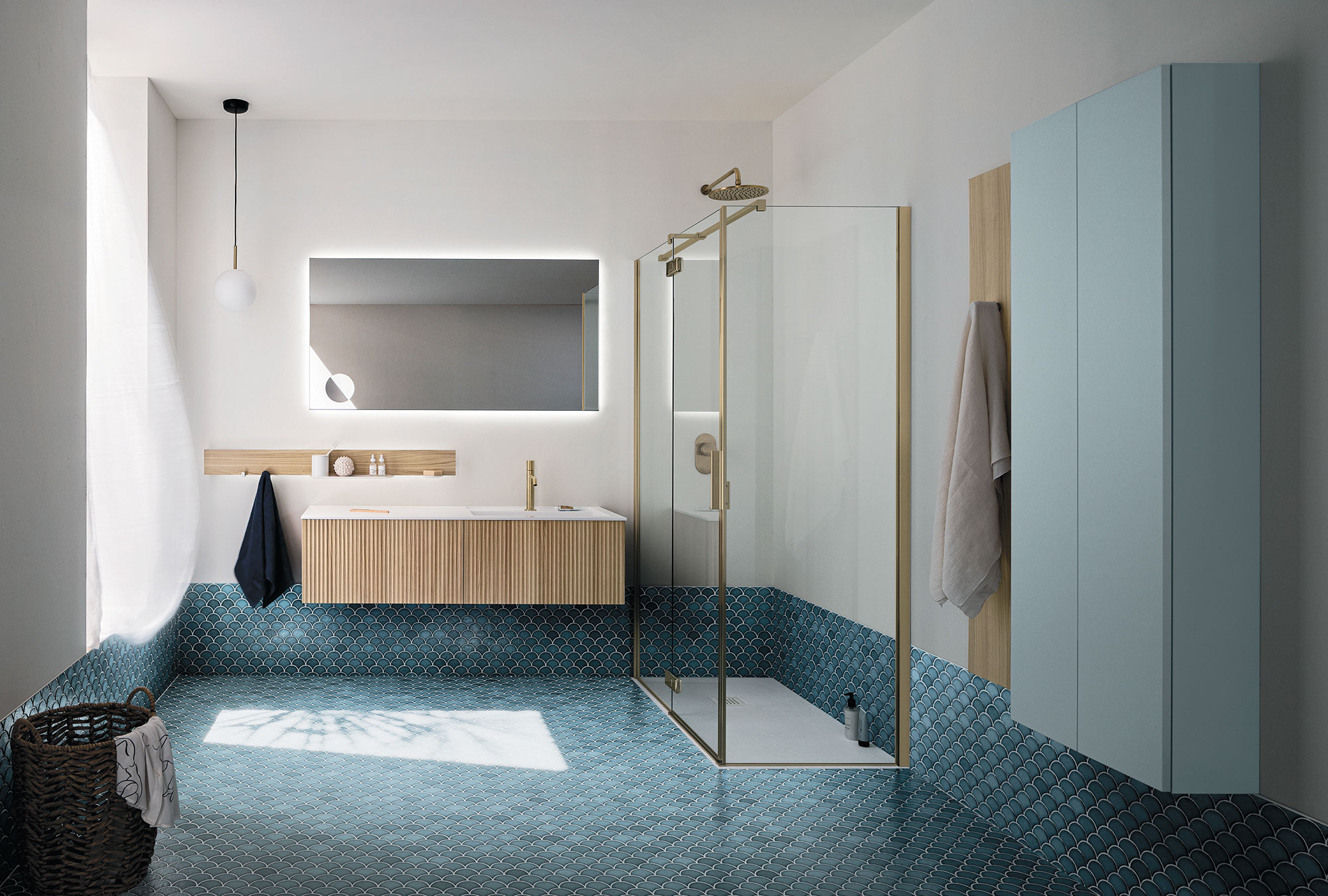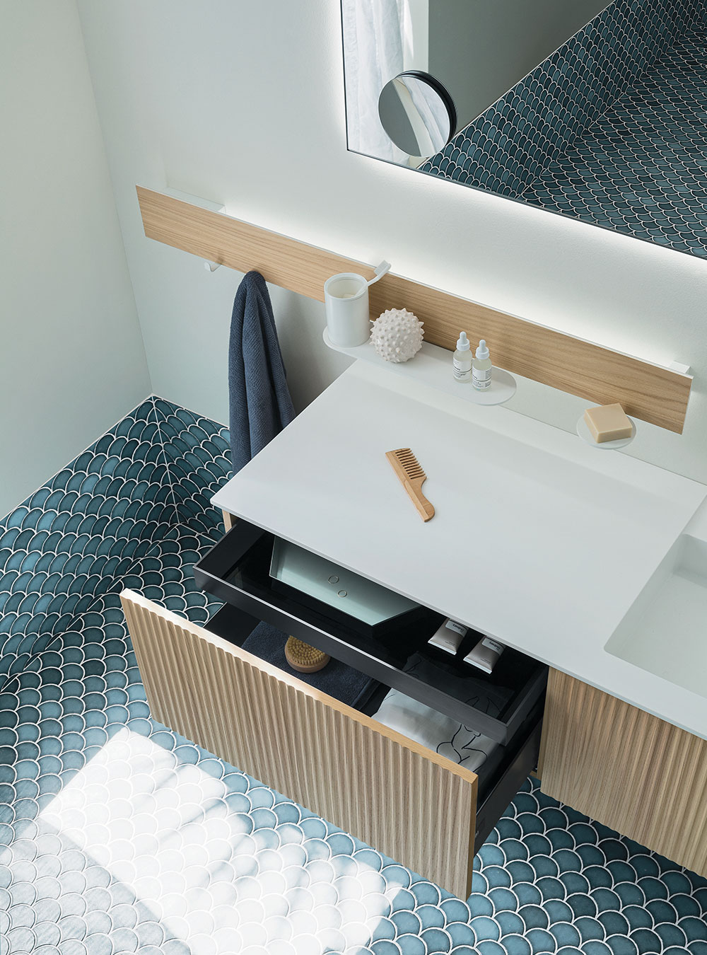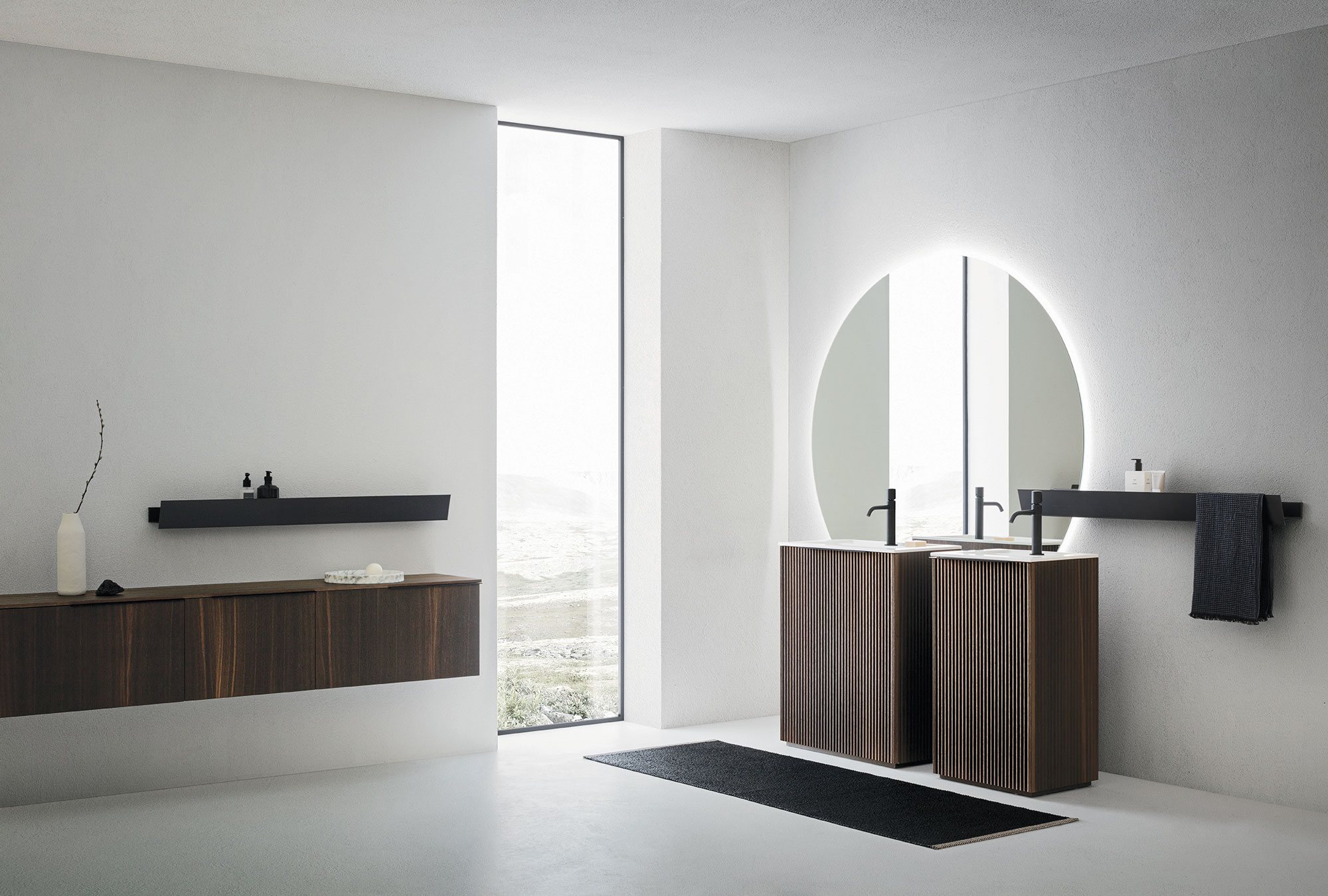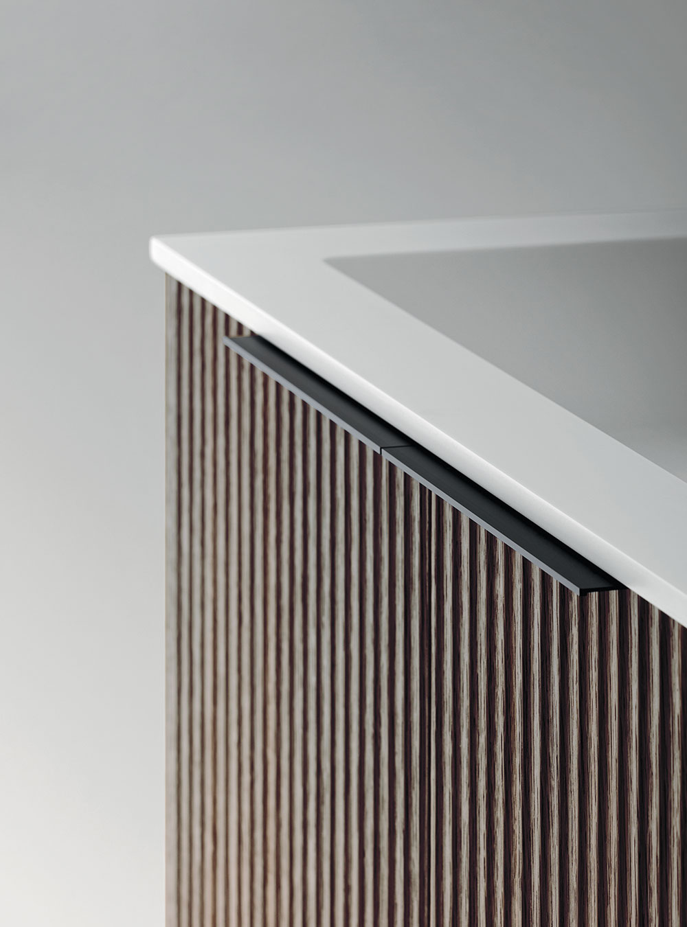La collection d’ameublement de salle de bain Sky exprime l’essentialité et l’élégance grâce aux meubles de salle de bain modernes et de design, aux lignes droites et sophistiquées. Un projet où rationalité et esthétique coïncident et sont représentées dans de savantes compositions de matériaux et de volumes, expression d’une profonde culture de l’ameublement. Sky, depuis toujours caractérisé par la porte lisse, agrandit sa collection et est maintenant disponible en quatre nouvelles versions « spéciales », Sky U, Sky Gola, Sky Ondina et Sky Pregiati, en meublant différentes salles de bain avec une harmonie raffinée.