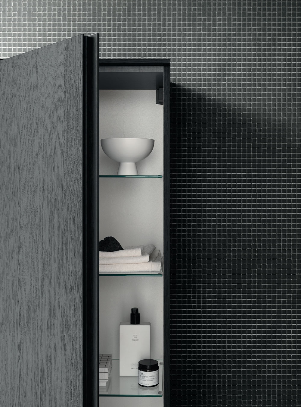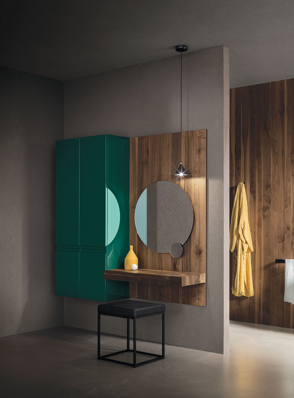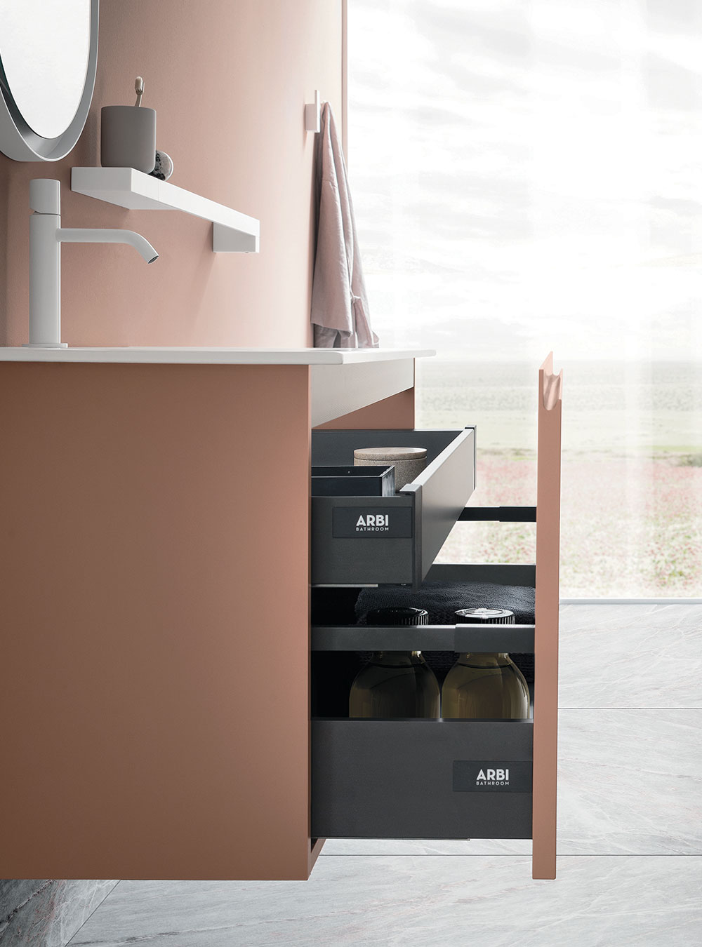 L’ameublement de salle de bain Street est caractérisé par la commode prise intégrée dans la porte, un élément esthétique et fonctionnel, prince de la collection. Praticité et raffinement vivent en parfaite syntonie en créant des solutions simples et des salles de bain plus recherchées, avec l’exclusive qualité Made in Italy. Les volumes essentiels et intemporels rencontrent la vaste modularité de la collection et conjuguent raffinement et élégance, en s’adaptant facilement à chaque salle de bain.
