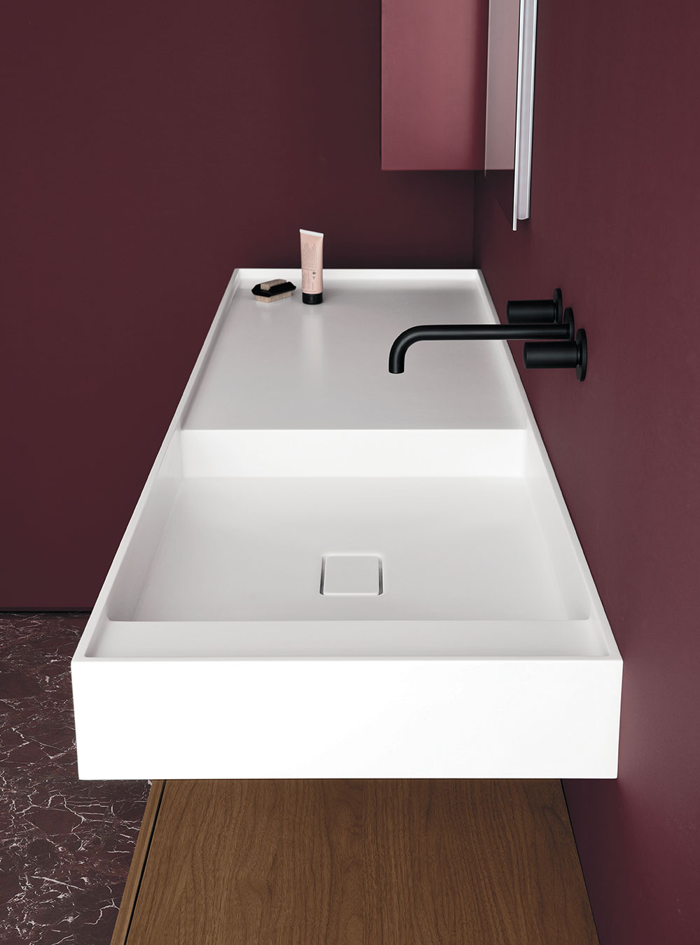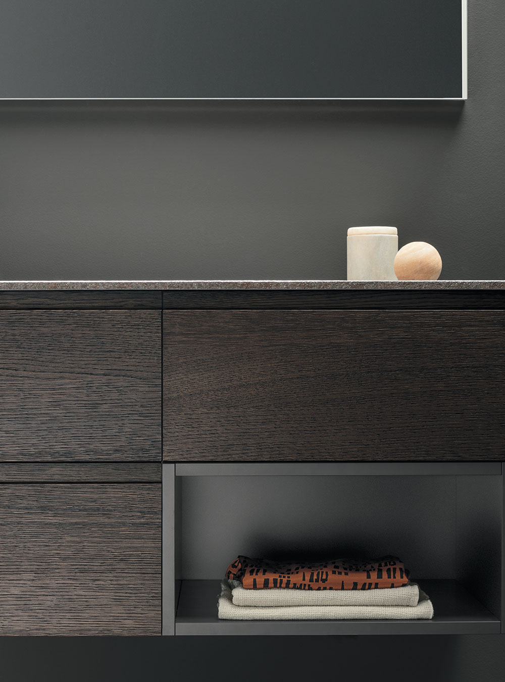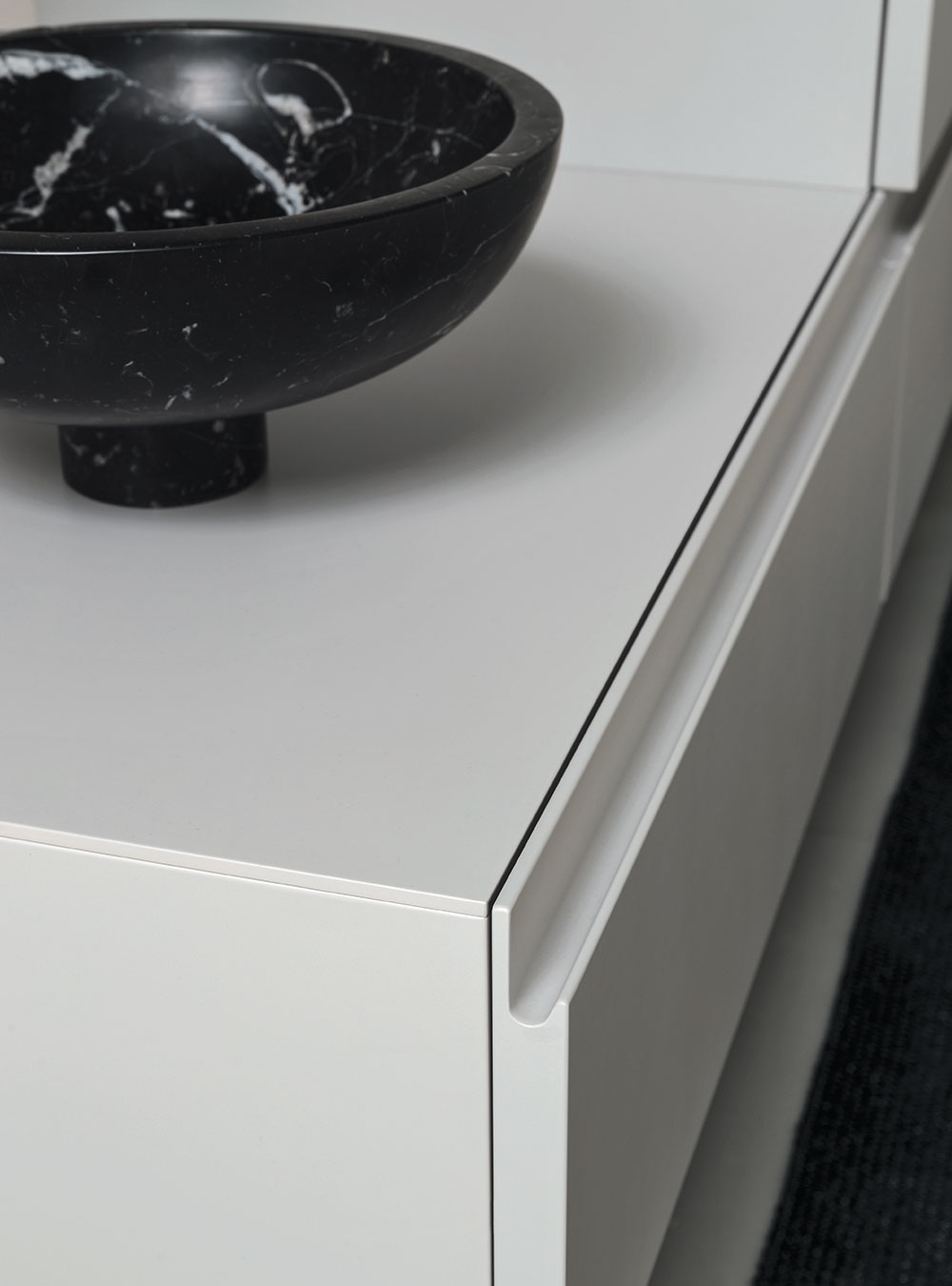 L’ameublement de salle de bain Street est caractérisé par la commode prise intégrée dans la porte, un élément esthétique et fonctionnel, prince de la collection. Praticité et raffinement vivent en parfaite syntonie en créant des solutions simples et des salles de bain plus recherchées, avec l’exclusive qualité Made in Italy. Les volumes essentiels et intemporels rencontrent la vaste modularité de la collection et conjuguent raffinement et élégance, en s’adaptant facilement à chaque salle de bain.